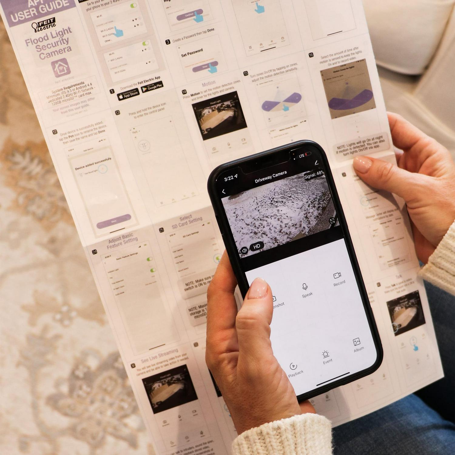The Feit Electric Smart Floodlight Security Camera makes it easy to upgrade your exterior home lighting to a flexible home security system. Protect your property and always know what s going on at home from any location using your smart mobile device. Feel empowered with powerful home security in the palm of your hands. Receive push notifications when activity is detected up to 32ft and 270 degrees. Capture, playback and share video and still recordings on your mobile device. Two way talk or sound the 100-decibel siren to scare off intruders, while the powerful lights leave no dark corners to hide. Always record in 1080P high definition to see faces and read license plates. Designed for simple DIY installation with no subscription fees, hub or special smart home hardware required. All you need is Wi-Fi.
