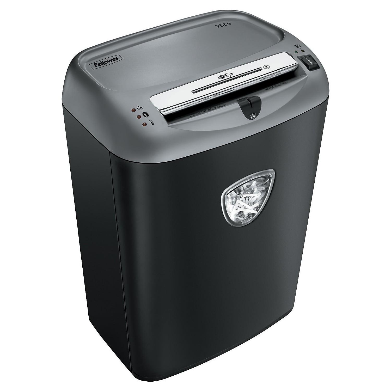 The Fellowes Powershred 75Cs Cross-Cut Shredder can shred up to 12 sheets of paper per pass into 397 (5/32 x 1-1/2 Security Level P-4) cross-cut particles. This machine also safely shreds CDs/DVDs, credit cards, staples, paper clips and junk mail. To protect more than your identity, the patented SafeSense Technology is designed with an electronic safety sensor that surrounds the paper entry and automatically disables the shredder when hands touch the paper opening. With the ability to shred for up to 12 minutes before a cool down period is needed, the 75Cs is ideal for personal deskside use and includes a 7-gallon pull-out bin. Backed by a worry-free 1-year product and service warranty plus a 5-year cutter warranty. 20.25 H x 15.00 W x 11.25 D. More from the Manufacturer Product Type: Paper Shredder Throat Width: 9 Shred Type: Cross Cut Product Type: Paper Shredder Throat Width: 9 Manufacturer Part Number: 4675701 Shred Size: 0.156 x 1.500 Shred Type: Cross Cut Limited Warranty: 1 Year Weight (Approximate): 22 lb Color: Dark Silver Color: Black Color: Dark Silver Color: Black Manufacturer: Fellowes, Inc Product Model: 75CS Product Name: Powershred 75Cs Cross-Cut Shredder Product Line: Powershred Brand Name: Fellowes Brand Name: Fellowes Country of Origin: China Height: 20.3 Width: 15 Depth: 11.3 Shred Speed: 11 ft/min Sheet Shred Capacity: 12 Per Pass Shredding Item: Paper Shredding Item: Junk Mail Shredding Item: Paper Clip Shredding Item: DVD Shredding Item: CD Shredding Item: Credit Card Shredding Item: Staples Product Family: Powershred Security Level: P-4 Recommended Number of Users: 1 Shredder Type: Non-continuous Shredder Wastebin Capacity: 7 gal Shred Speed: 11 ft/min Sheet Shred Capacity: 12 Per Pass Shredding Item: Paper Shredding Item: Junk Mail Shredding Item: Paper Clip Shredding Item: DVD Shredding Item: CD Shredding Item: Credit Card Shredding Item: Staples Security Level: P-4 Recommended Number of Users: 1 Shredder Type: Non-continuous Shredder Cool Down Time: 20 Minute Maximum Run Time: 12 Minute Wastebin Capacity: 7 gal