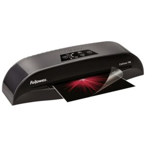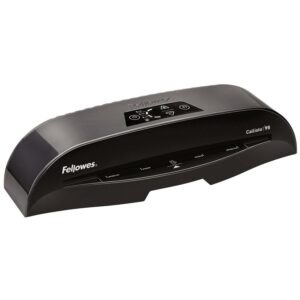 Fellowes Features Hot Swap Technology allowing users to change between different pouch and document thicknesses without waiting. Hot lamination for 3 or 5-mil pouches as well as cold pouches. The reverse mode disengages pouch for re-centering or removal. The unique Heat Guard Technology keeps heat inside so laminator is comfortable to touch. Accommodates multiple document sizes. Improved rapid 1 minute warm-up with Heat Technology gets you laminating sooner. Rapid laminating speed up to 19″/minute. Pouch Tracking System detects and alerts the user if there is a misfeed and will automatically reverse the document until the jam is cleared. Auto shut-off prevents overheating when not in use. Includes laminating starter kit.