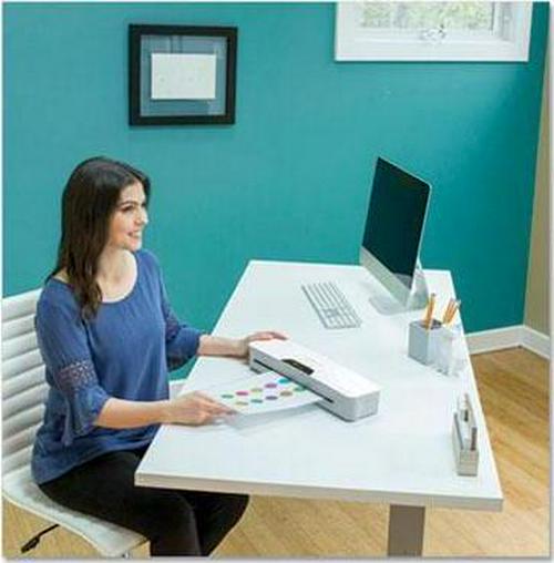 – White/light gray thermal and cold laminator for use with laminating pouches to protect documents. Auto Shut off saves energy and prevents overheating.