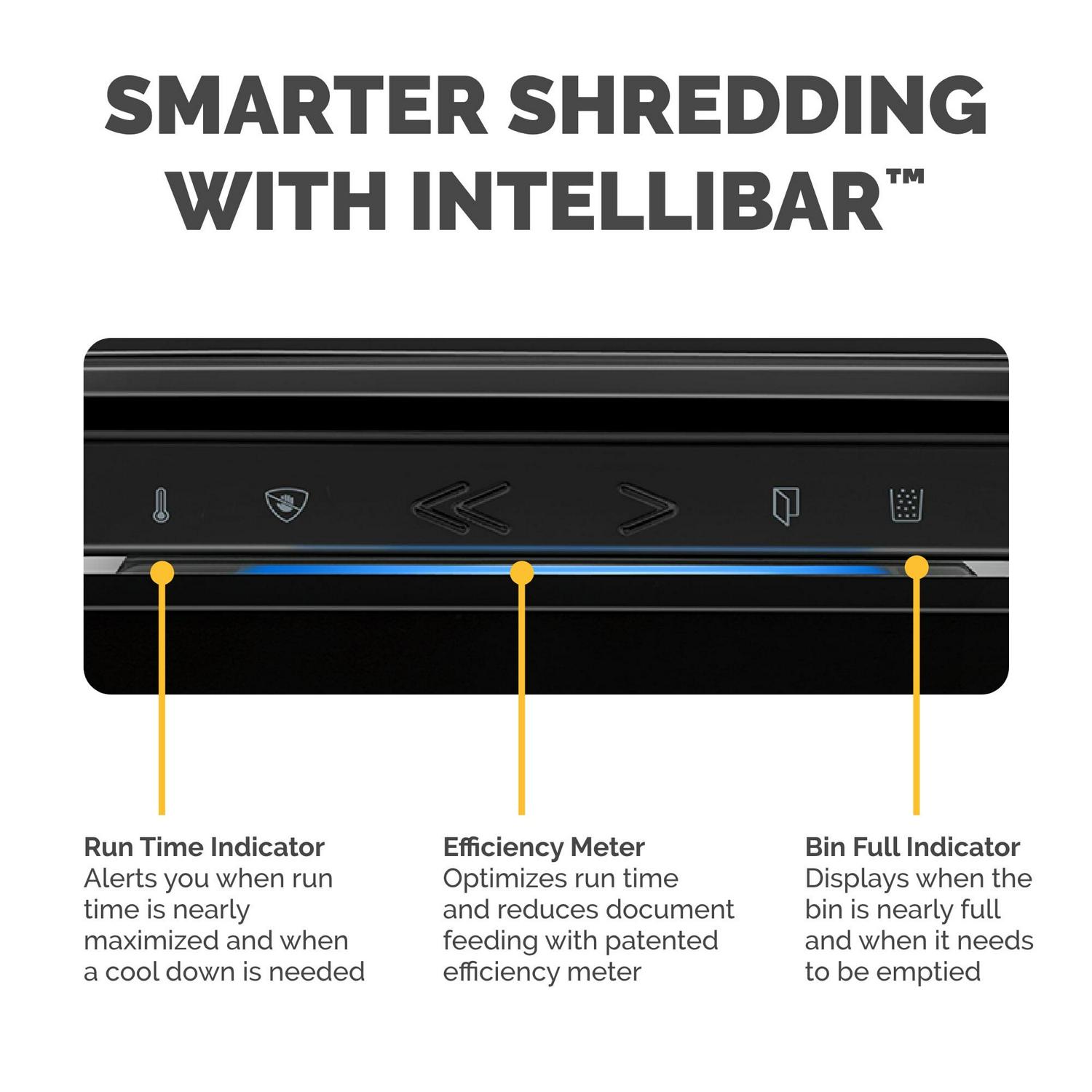 – Efficiency Meter: Indicates the ideal number of sheets that can be shredded at a time