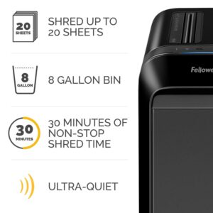Fellowes Powershred LX220 20 Sheet Micro-Cut Paper Shredder (Black) Shred Size – P-4, 16.50 H