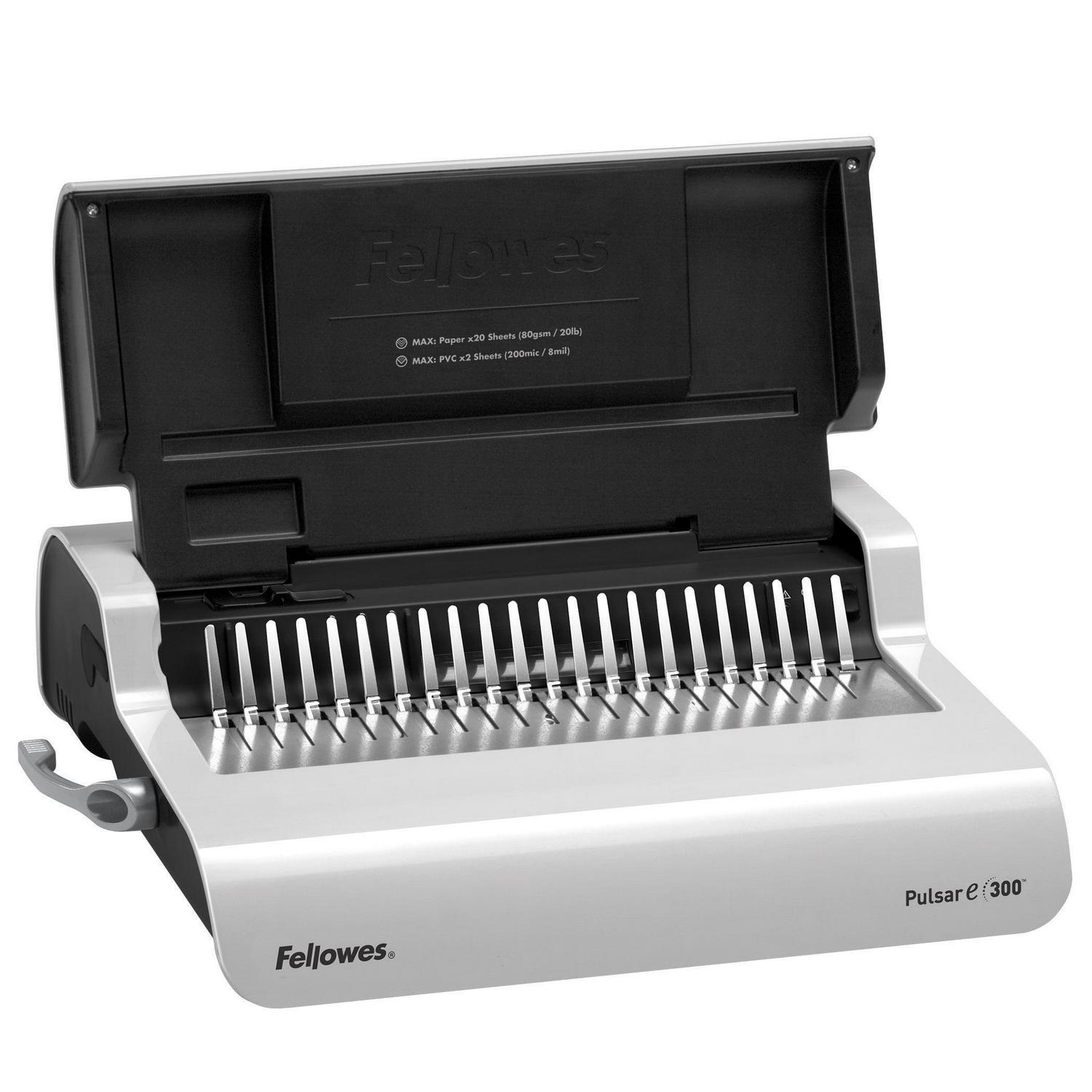 Fellowes Pulsar E 300 Electric Comb Binding Machine w/Starter Kit, White, Black