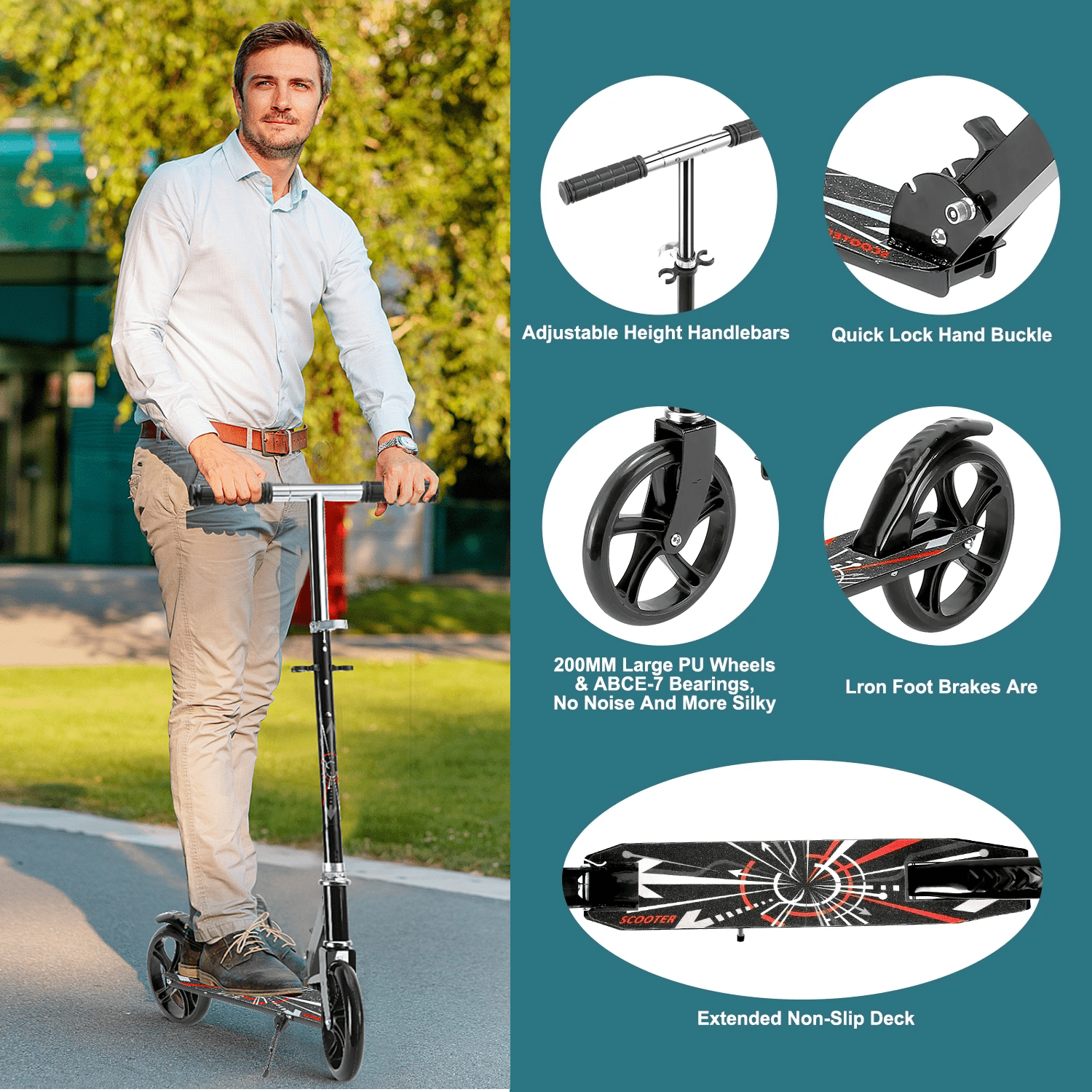 Fenbeli 200mm Black Scooter, Commuter Scooter Height Adjustable, Folding Kick Scooter for Teens & Adults