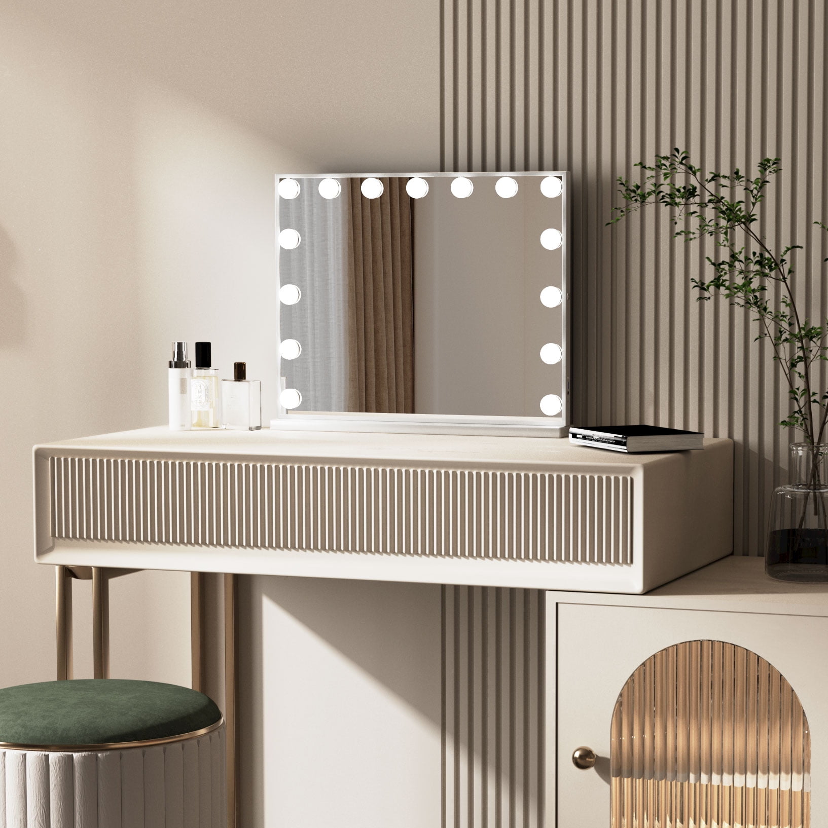 Fenchilin 23”x18” Vanity Mirror with Lights Tabletop Wall Mount Metal White