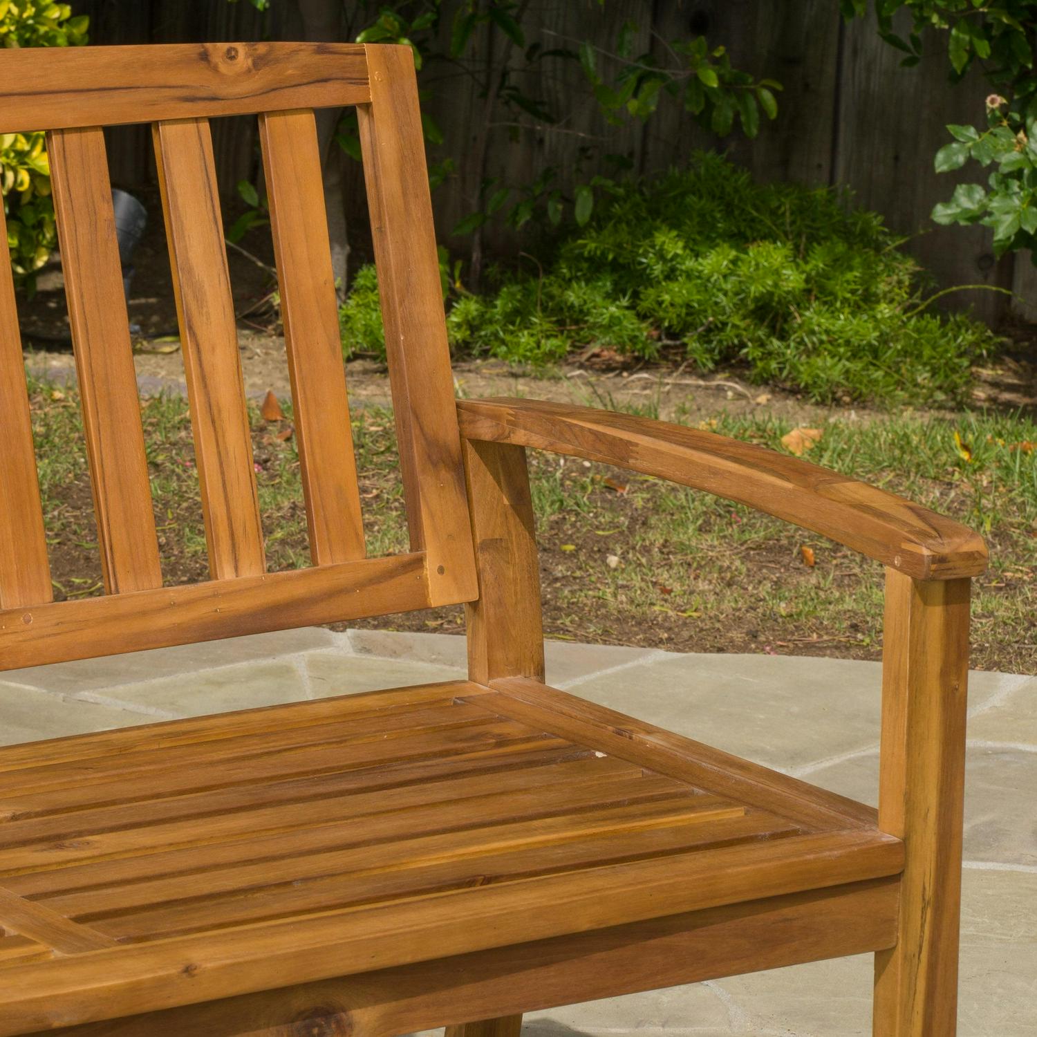 Fermin Outdoor Acacia Bench, Teak Finish