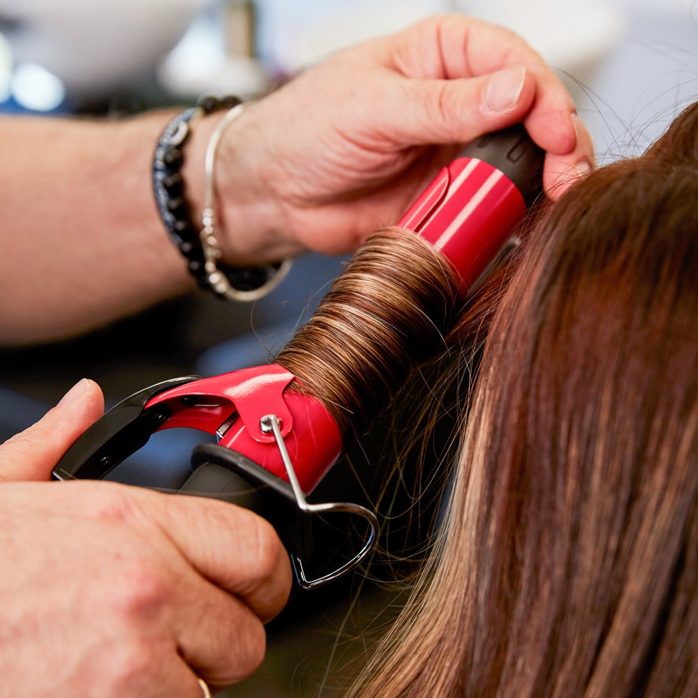 -Easy to Use Adjustable Temperature Control for variable settings from 250 degree F to 450 degree F -Advanced PTFC (Positive Temperature Frequency Control) Heater offers the widest temperature range that is ideal for all hair types -Three layers of baked ceramic Barrel that are scratch resistant and infused with Tourmaline to produce high amounts of negative ions to seal in vital moisture, repel humidity, reduce frizz and help eliminate static