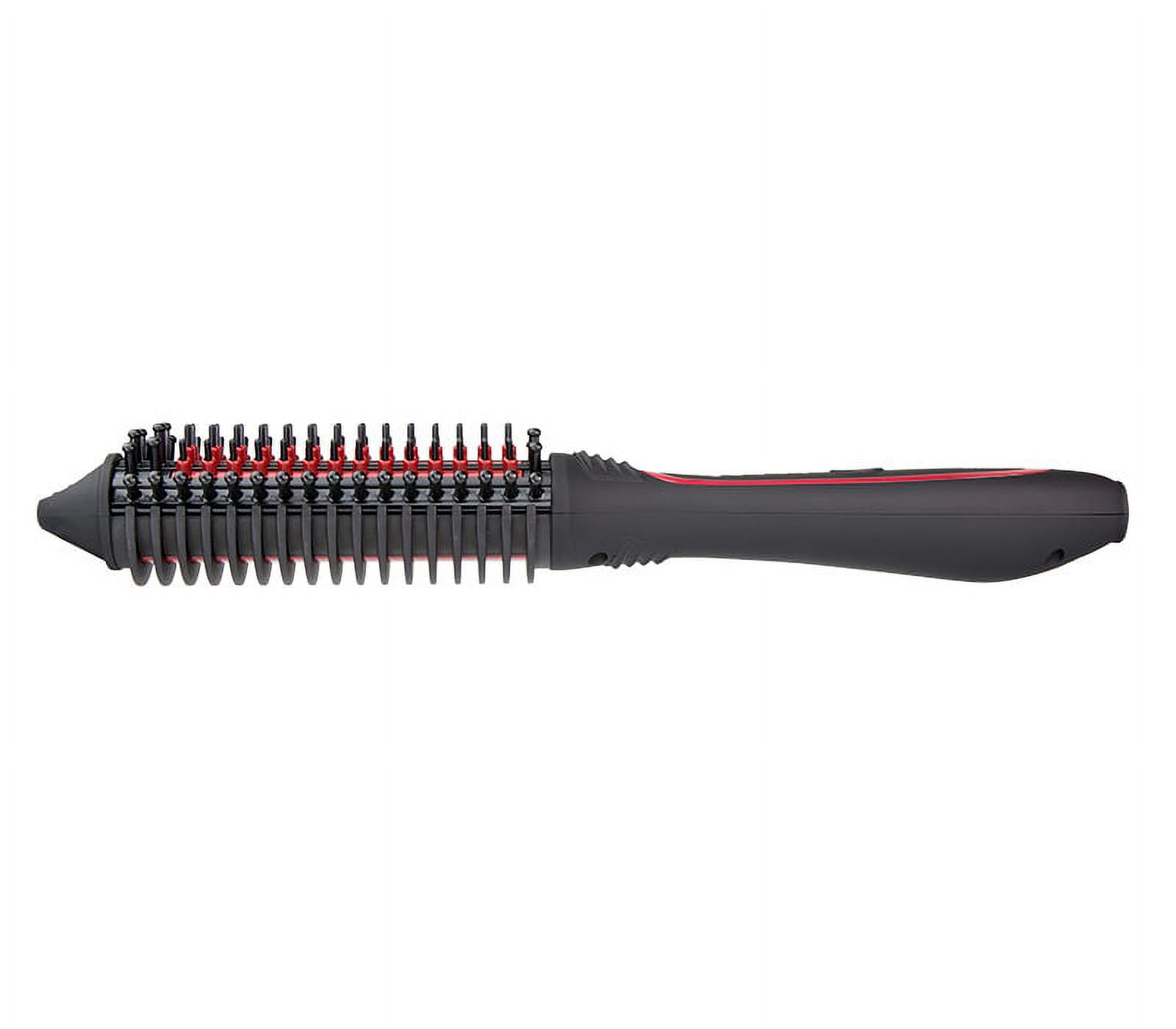 7 chambers of ceramic heat and 4 tourmaline ceramic heat conductors Heated, curved ridge back creates an ultra-smooth, high shine finish. Tourmaline ceramic coated sturdy, nylon bristles lock in moisture and reduce static Temperature control button from 250°F to 400°F to customize for any hair type Includes a pair of thermal styling gloves for styling protection