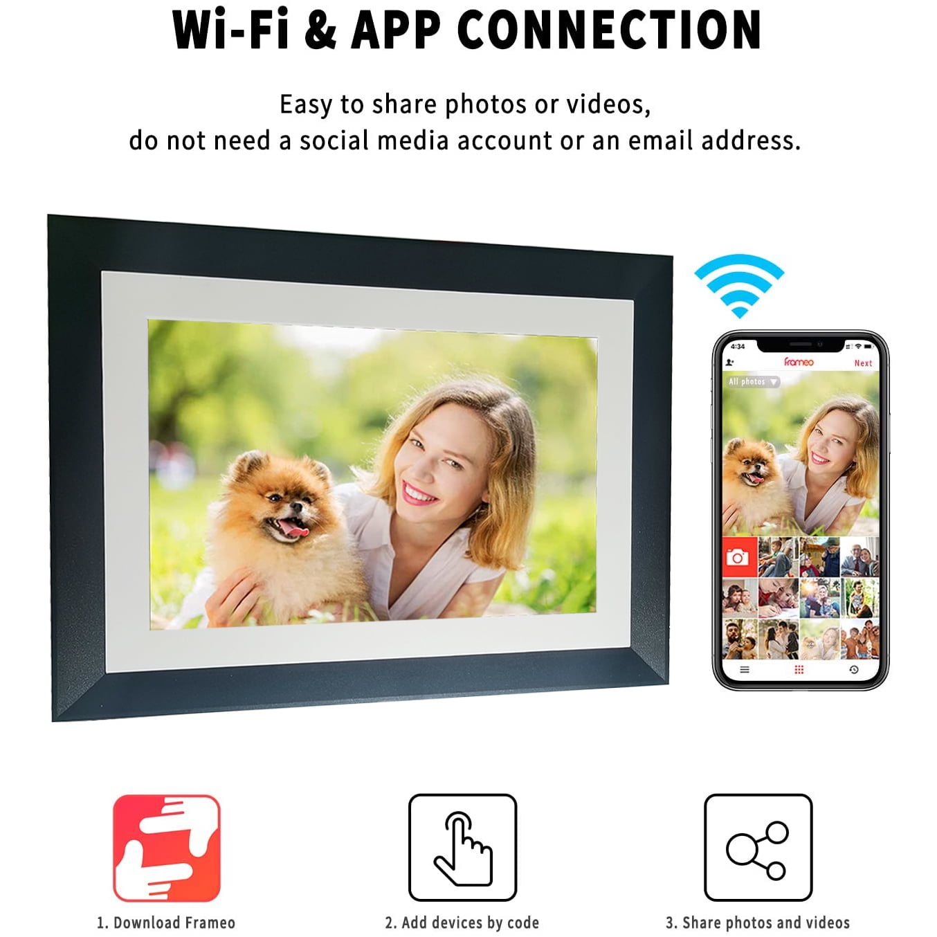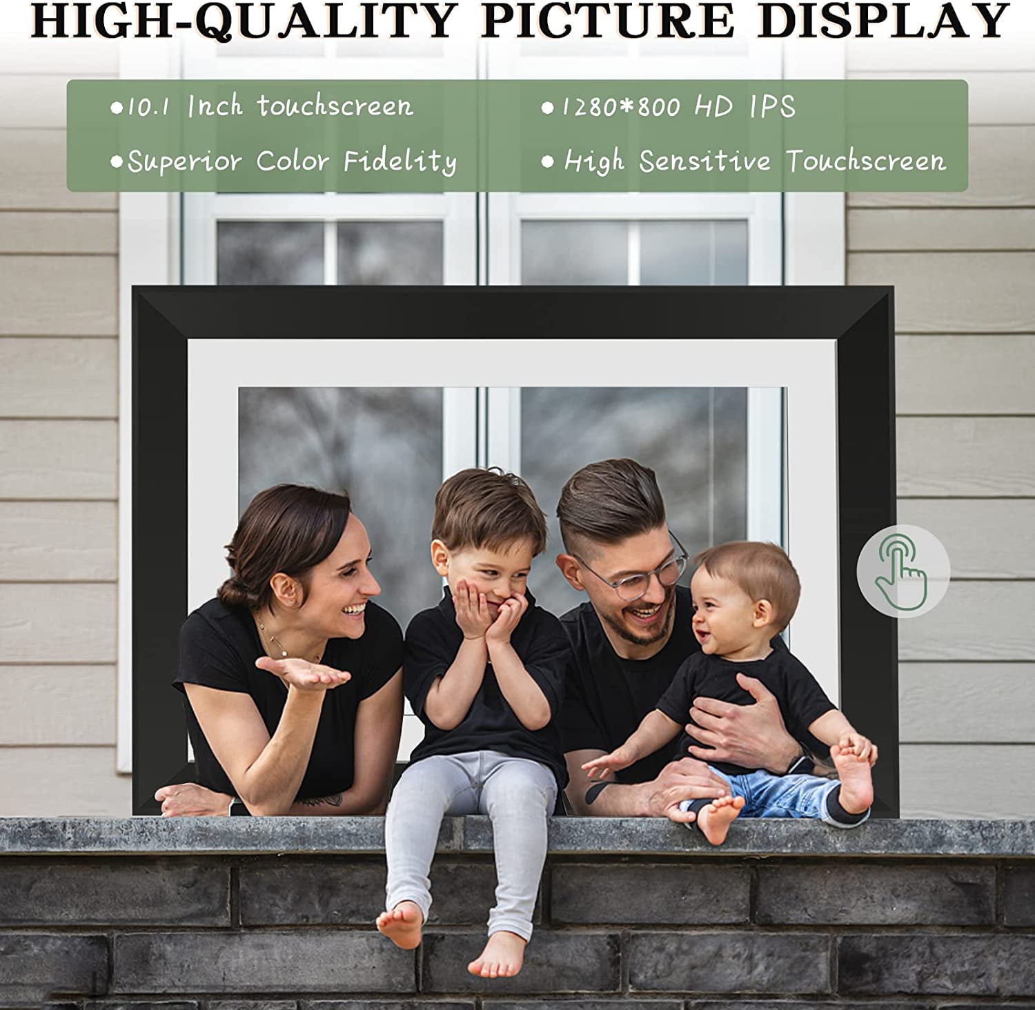 GCZ 10.1” WiFi Digital Picture Frame, 1280*800 HD Touch Screen, Smart Photo Frame with Built-in 16GB, Auto-Rotate, Share Photos/Videos via FRAMEO App