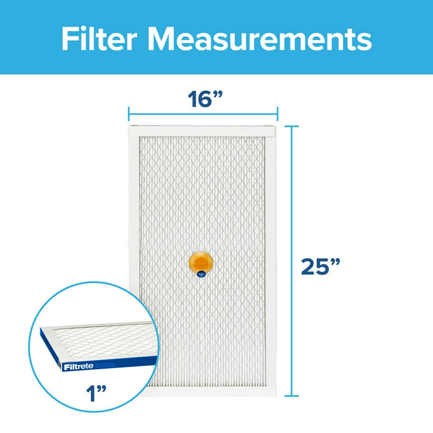 Filtrete 16x25x1 MPR 2200 Smart Premium Allergen & Home Pollutants HVAC Air and Furnace Filter, made by 3M, helps attract and capture unwanted microscopic and large particles to contribute to a cleaner, fresher home environment, while Bluetooth technology helps track filter life. CERTIFIED asthma and allergy-friendly (1), with a MERV 13 rating and high MPR rating of 2200, your AC filter will capture many microparticles such as smoke, bacteria and viruses letting cleaner air flow through. This air filter captures up to 78% of airborne virus particles (2) to help make your air cleaner. Your filter will also capture large particles, including lint, pollen and household dust. With a Bluetooth-enabled sensor to track filter life based on data from your home s HVAC system, you can track the life of your Filtrete Filter based on air flow and usage not just time. The easy setup involves simply downloading the Filtrete Smart App, pairing the smart air filter and getting notifications to your smartphone. When it s time to replace your furnace filter, you will be notified, so you never have to worry about changing your air filter too early or too late. Also, you can use the Filtrete Smart App to remind you of your specific filter types and sizes, shop for replacements and see the outdoor air quality information for your neighborhood and other chosen locations. The Filtrete Smart App is available on iOS and Android. The No. 1 Recommended HVAC Air Filter Brand (3), Filtrete Home Air Filters provide the breakthrough technology needed to change how we clean our air, by filtering out particles both large and invisible, to create a cleaner, healthier home for ourselves and our families. Residential use only.