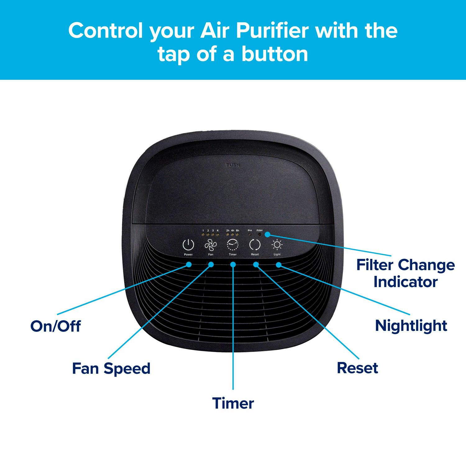 – REPLACEMENT FILTER OPTIONS: Advanced Allergen, Bacteria & Virus True HEPA; Allergen Reduction; Allergen Reduction + Odor Reduction