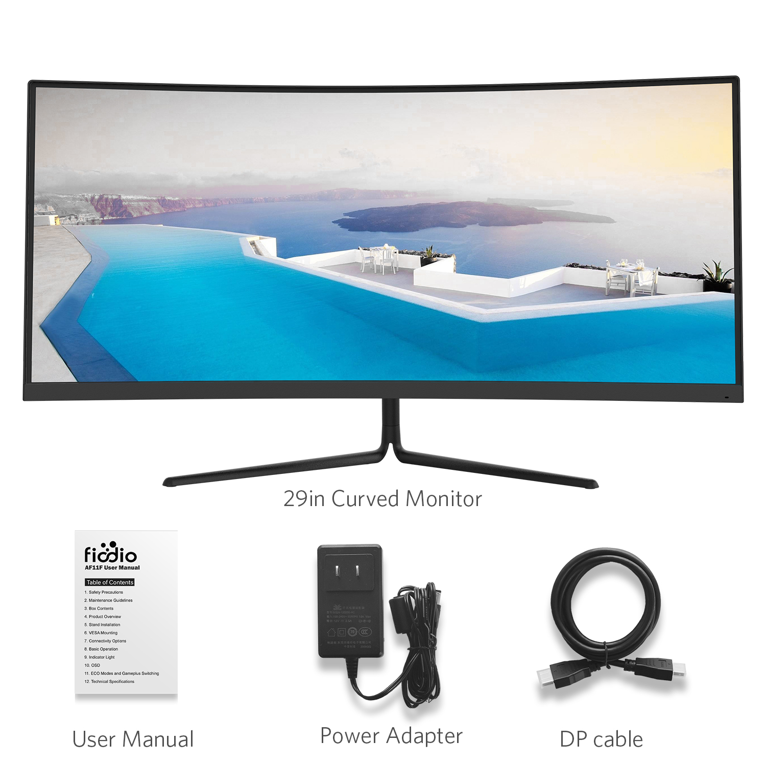 Fiodio 30″ 21:9 UltraWide 100Hz Curved Gaming Monitor, 2560 * 1080P, HDMI DP Ports, Speakers
