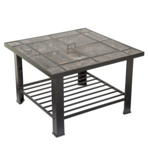 – DURABLE DESIGN- Enjoy your tile wood burning Fire Pit without worry. Made from powder coated steel to resist rust, this fire pit is lightweight and weatherproof for longer lasting outdoor use. The steel leg construction and decorative sturdy design will have long lasting appeal and would be a charming addition to your yard or patio.