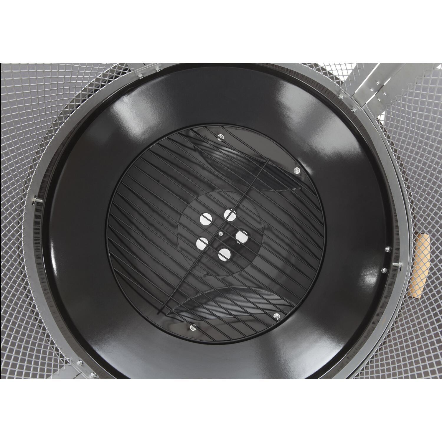 Warm-up outdoors with the glow of the Fire Sense Bessemer Patio Fireplace. It’s a simple and attractive way to heat your outdoor living area for special occasions and casual gatherings. This item has a classic design that pairs easily with most exterior landscaping and decor. Natural wood accents provide a functional and beautiful counterpoint to the metallic frame. A porcelain enamel bowl safely holds logs, while the lid features a handle that makes setup and dismantling simple. A steel grate elevates wood for optimal airflow. The silver high-temperature painted center steel fire screen keeps the fire contained but visible with a spark arrester for safety. This Fire Sense fireplace’s patented center door allows easy access to the fire. A powder-coated steel support frame offers ample stability. The convenient wheels and handle assembly allow you to position this 28″ outdoor patio fireplace in just the right spot for your outdoor entertaining.