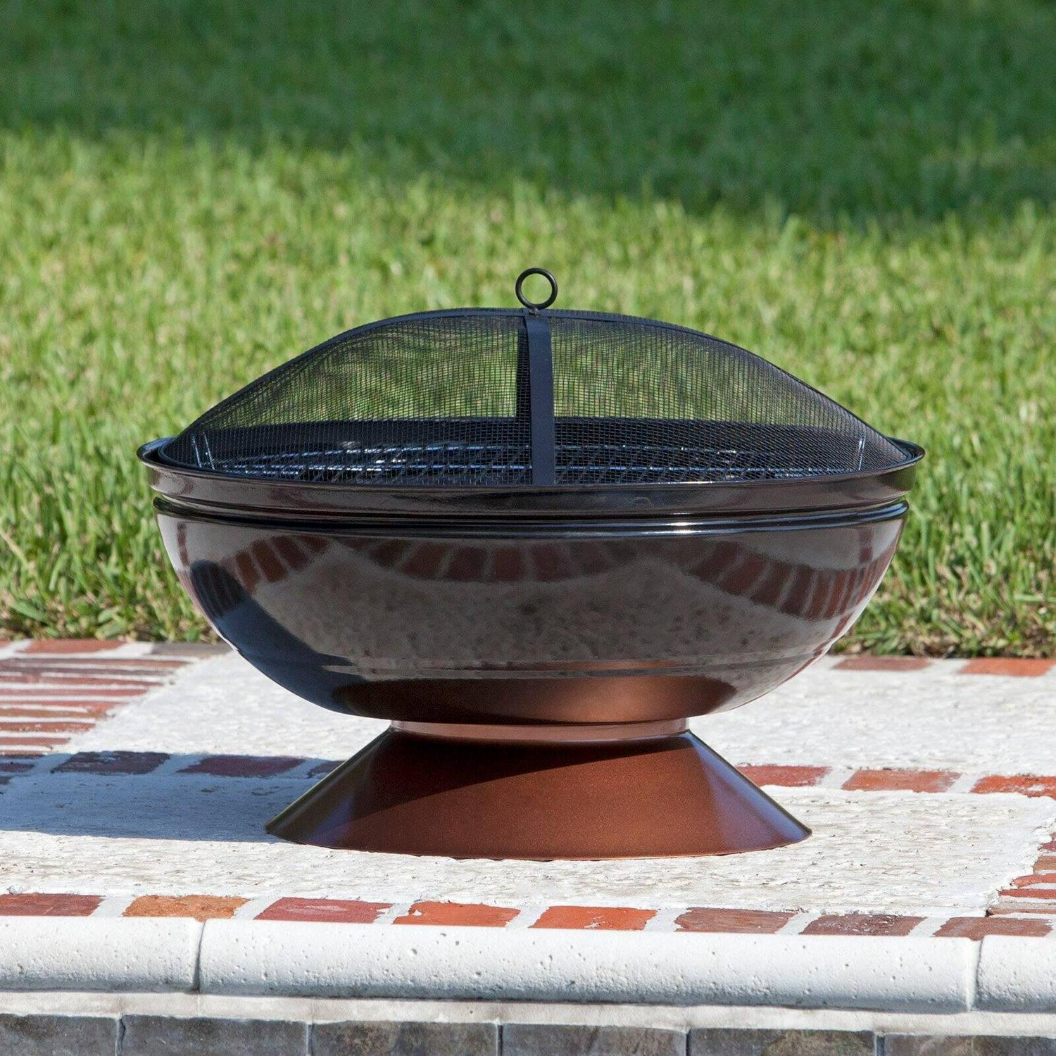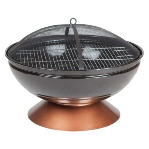 Incorporate years of communal enjoyment around an outdoor blaze with the stunning Fire Sense Degano 26 diam. Fire Table. This unique enamel-painted fire bowl and base’s handsome warm tones, courtesy of its copper and black gradient finish, will warm your eyes as much as its fires will warm your soul. Included are a dome mesh spark screen, replete with high-temperature paint, and a screen lift tool to keep your limbs safe. Also included are a wood and cooking grate for all your outdoor heating and cooking desires. Sizzling hot dogs, anyone