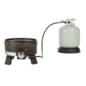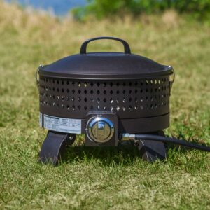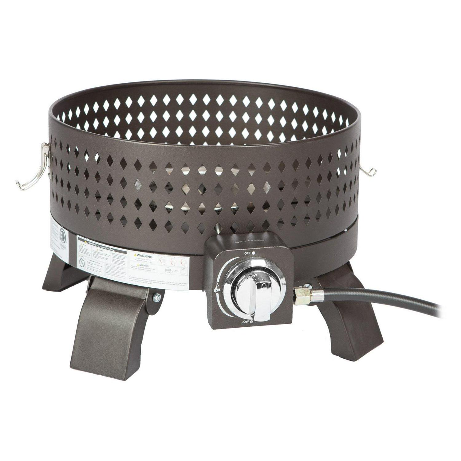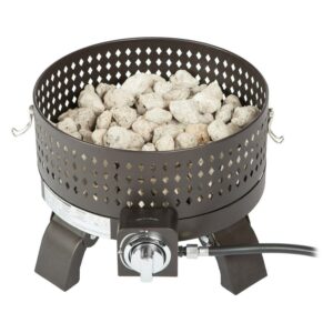 The Fire Sense Sporty Campfire Portable 19 diam. Fire Pit is the perfect addition to your camping trip or picnic. This fire pit is compact, with spring-hinged, folding legs and a removable lid, yet powerful with a 60,000 BTU capacity. Lava rock disperses flames evenly and creates an attractive glow. Made of heat resistant steel with a dark bronze finish, this fire pit is ready to be easily packed up to join you on an adventure.