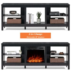 Fireplace TV Stand for 75 Inch TV Entertainment Center, LED Lights Wood TV Console Table with 4 Storages for Living Room Bedroom, 70” White