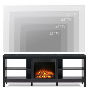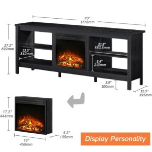 Fireplace TV Stand for TV’s up to 75 Inch, Wood Entertainment Center for 80 inch TV with Electric Fireplace for Living Room Bedroom , 70 inch, Black