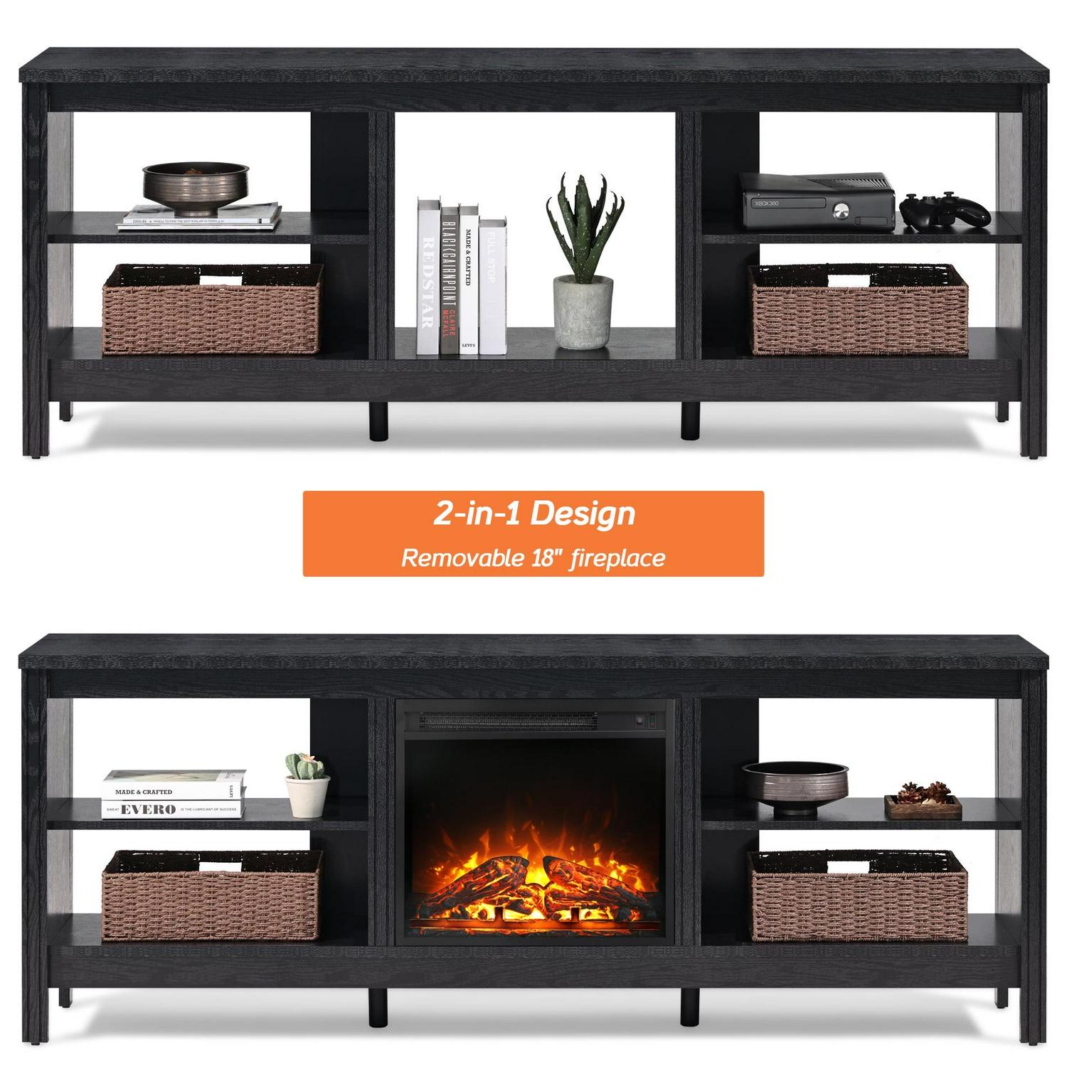 Electric Fireplace Insert The black fireplace TV stand with 18” electric fireplace can be used WITH or WITHOUT heat. You can put the fire place to bring warmth to the cold winter.