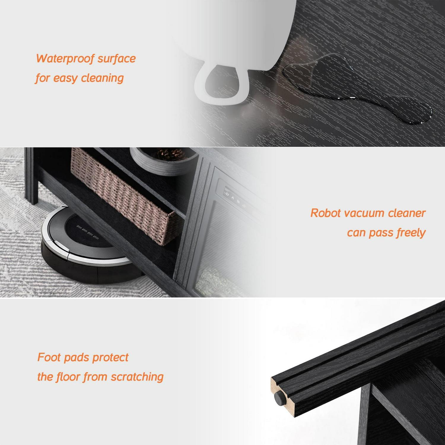 Note: The telvision stands and fireplace insert are shipped separately, so you may receive two packages at different times. The black fireplace tv stand combining 4 storage with an electric fireplace can be used with or without heat. You can put the fireplace in the cabinet to bring warmth to the cold winter and enjoy the 3d realistic flame effect in the summer. With the rustic style, this fireplace entertainment center can greatly upgrade your living space.