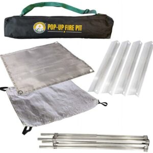 What’s the point of a camping with no campfire Bring the fire safely to your site with the Fireside Industries Outdoor Pop-Up Fire Pit. Prepare the s’mores, snacks, and stories! You can take this pit with you wherever you go. It folds up in a pack that’s smaller than a camping chair, allowing you to carry it with ease. With trusty aluminum construction, this pit cools down as quickly as 90 seconds after your fire is finished. From the beach to the backyard, no outdoor hangout is complete without a portable campfire pit.