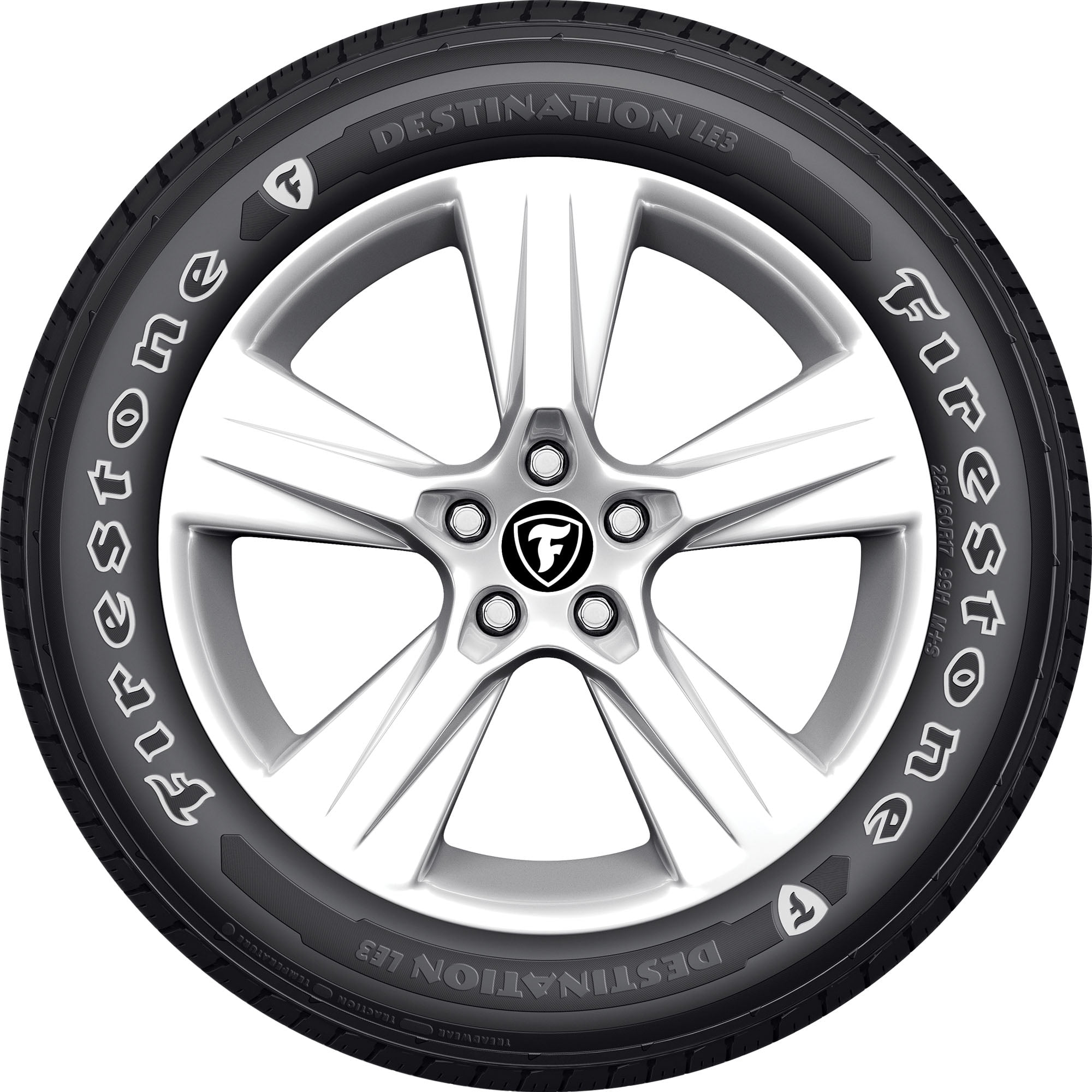 The Firestone Destination LE3 is a highway terrain, all season tires made for small trucks and SUVs. The model has numerous touring tires available for passenger cars. The tread comes with particularly detailed siping that enhances traction in various weather conditions. Firestone offers a 70,000-mile treadwear warranty. The Destination LE3 boasts a completely stable footprint that enhances its steering responsiveness. The tire handles dry, wet, and snowy road surfaces equally well with consistent traction. Designed to deliver a quiet and comfortable ride, the Destination LE3 offers a long treadlife and confidence in inclement weather, including light snow. Bears Mud + Snow ( M+S) symbol