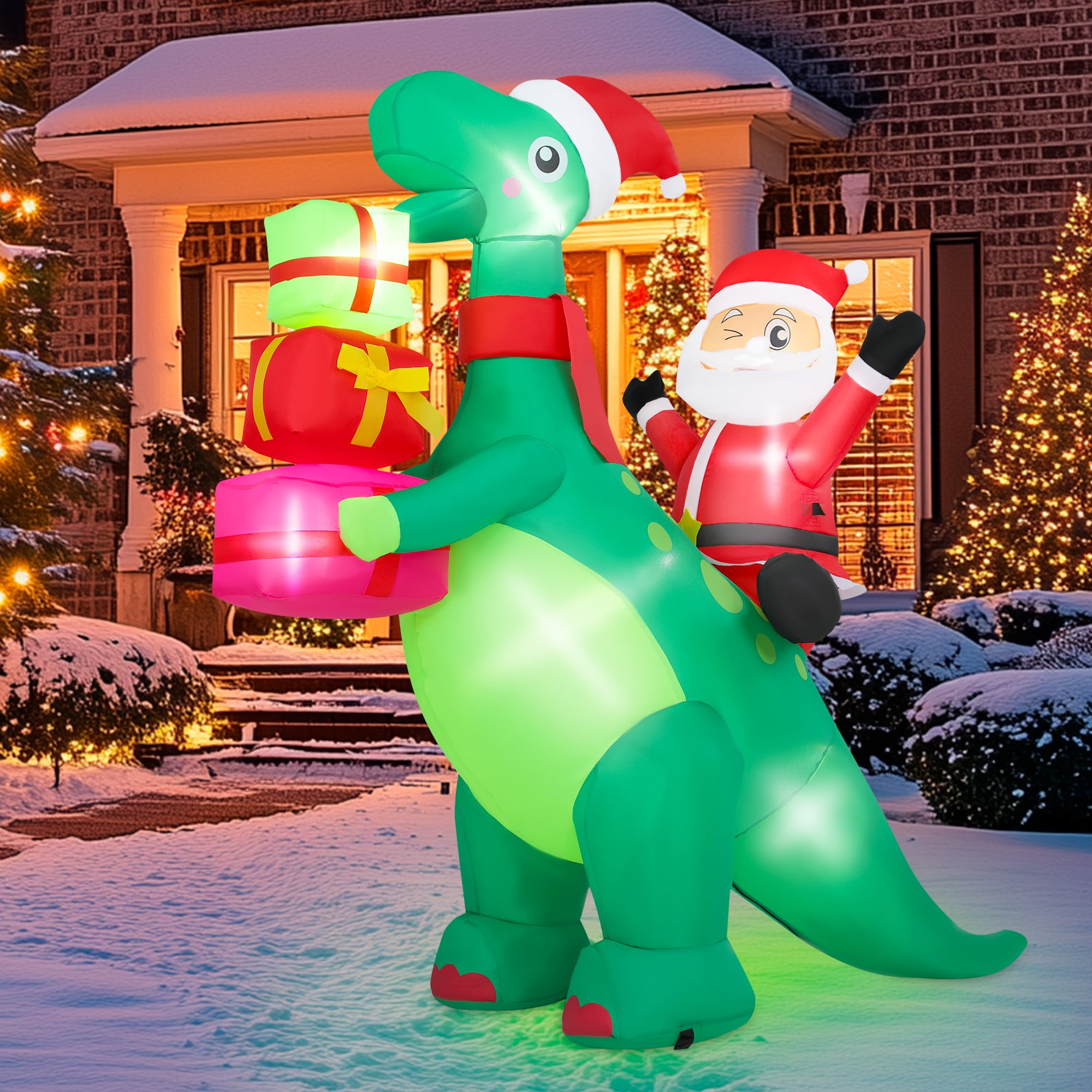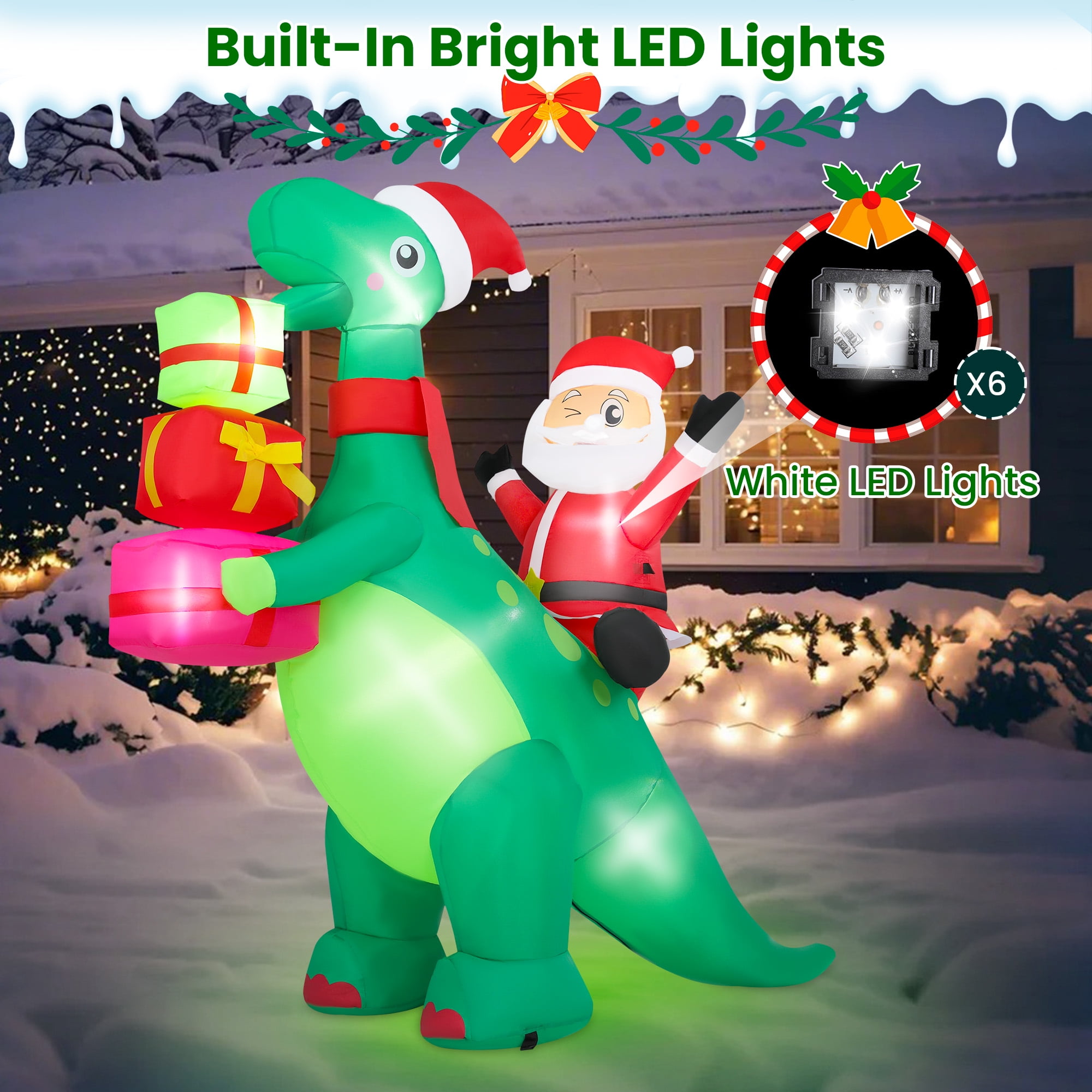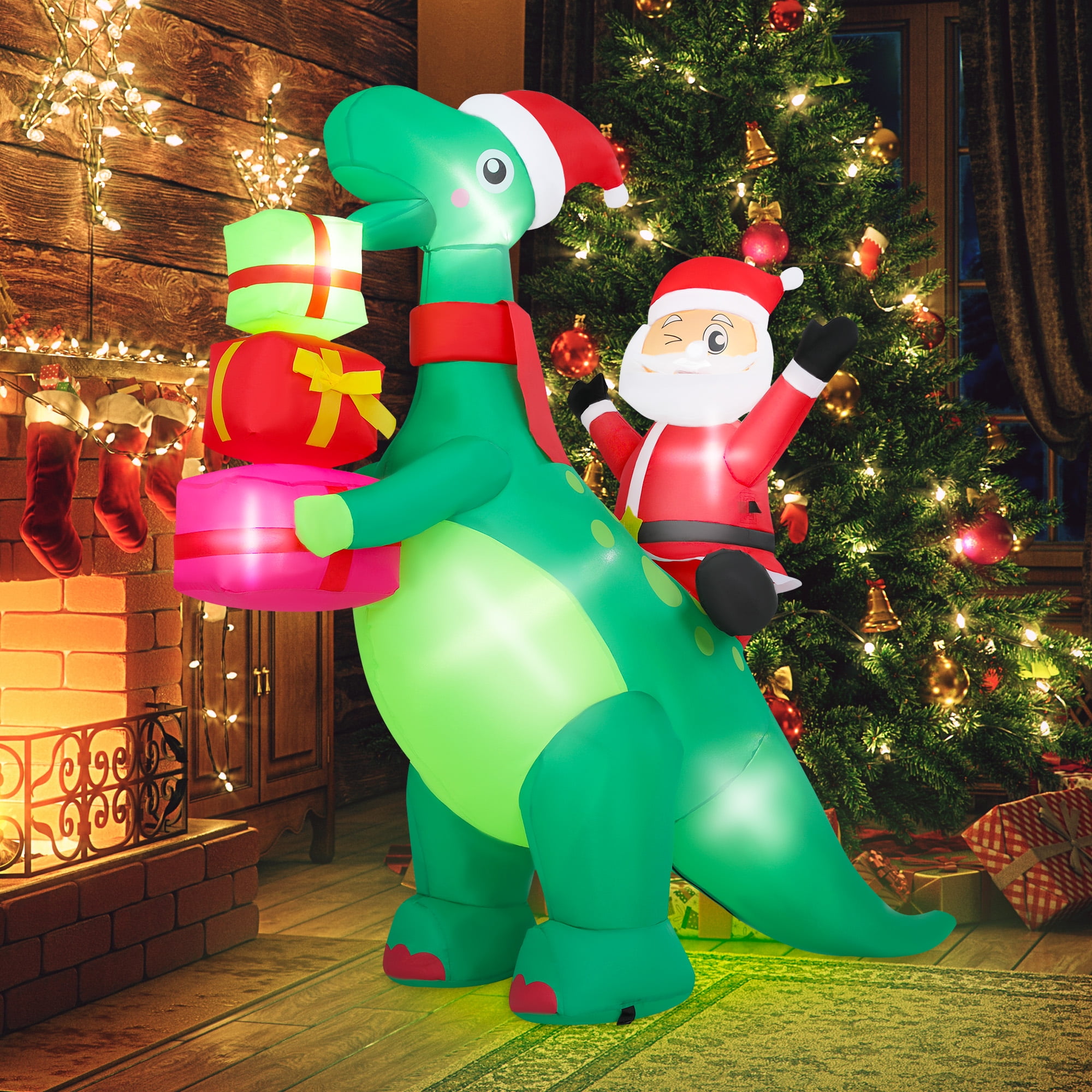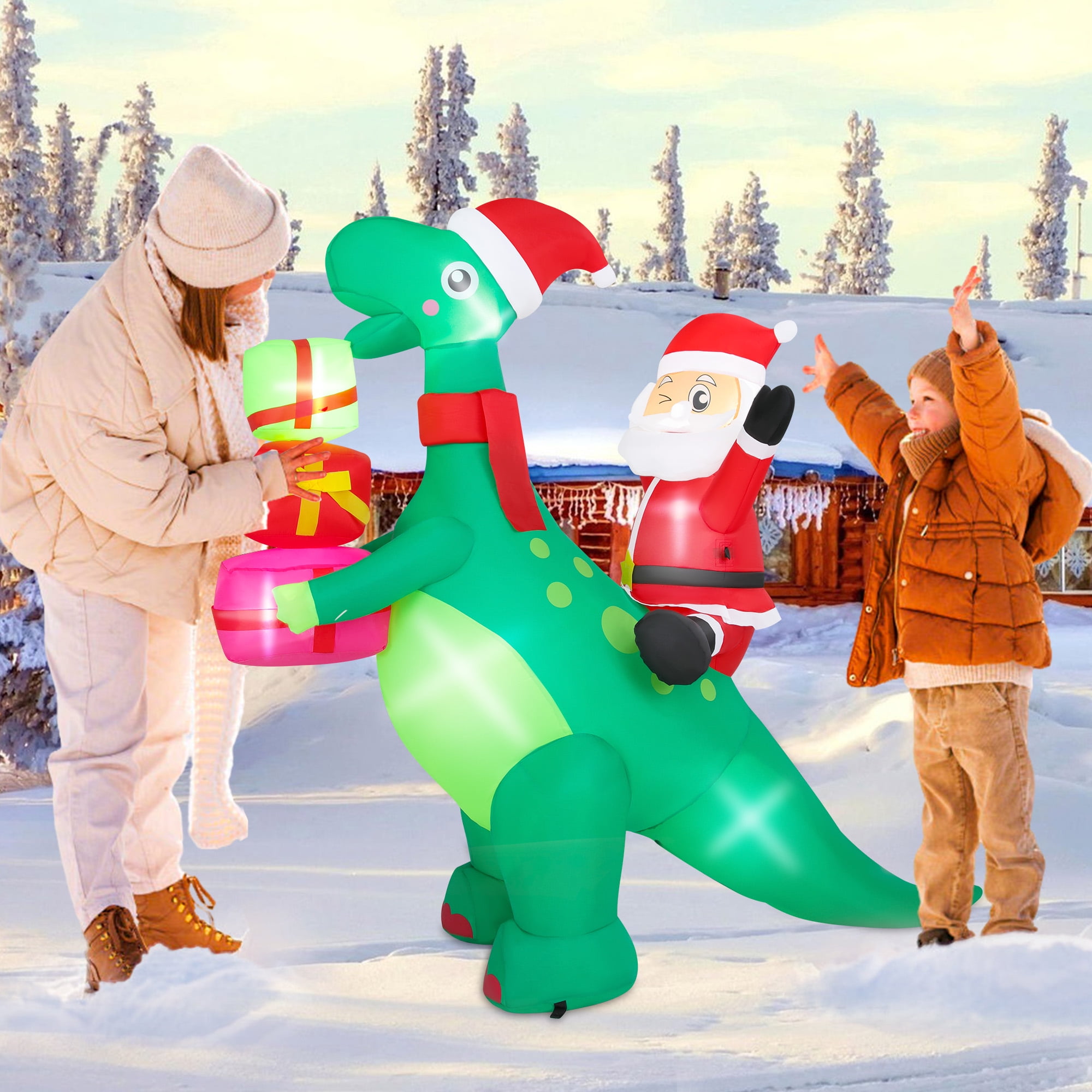Firstness 5ft Christmas Inflatables Outdoor Decoration with LED Lights, Christmas Blow ups Santa Claus Dinosaur Xmas Decor for Party Yard Garden Lawn