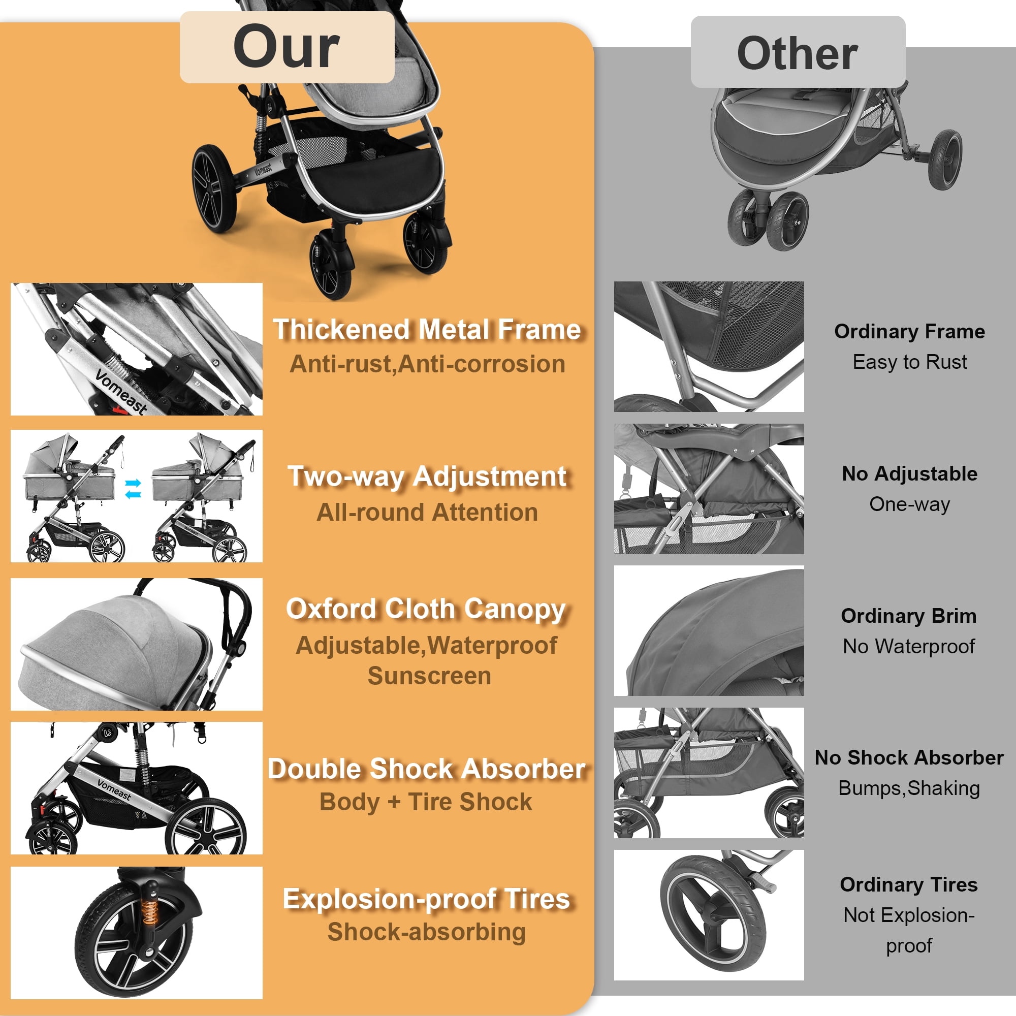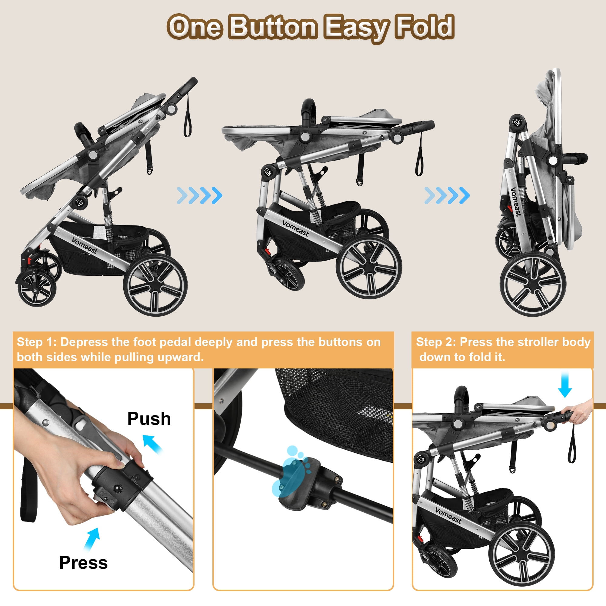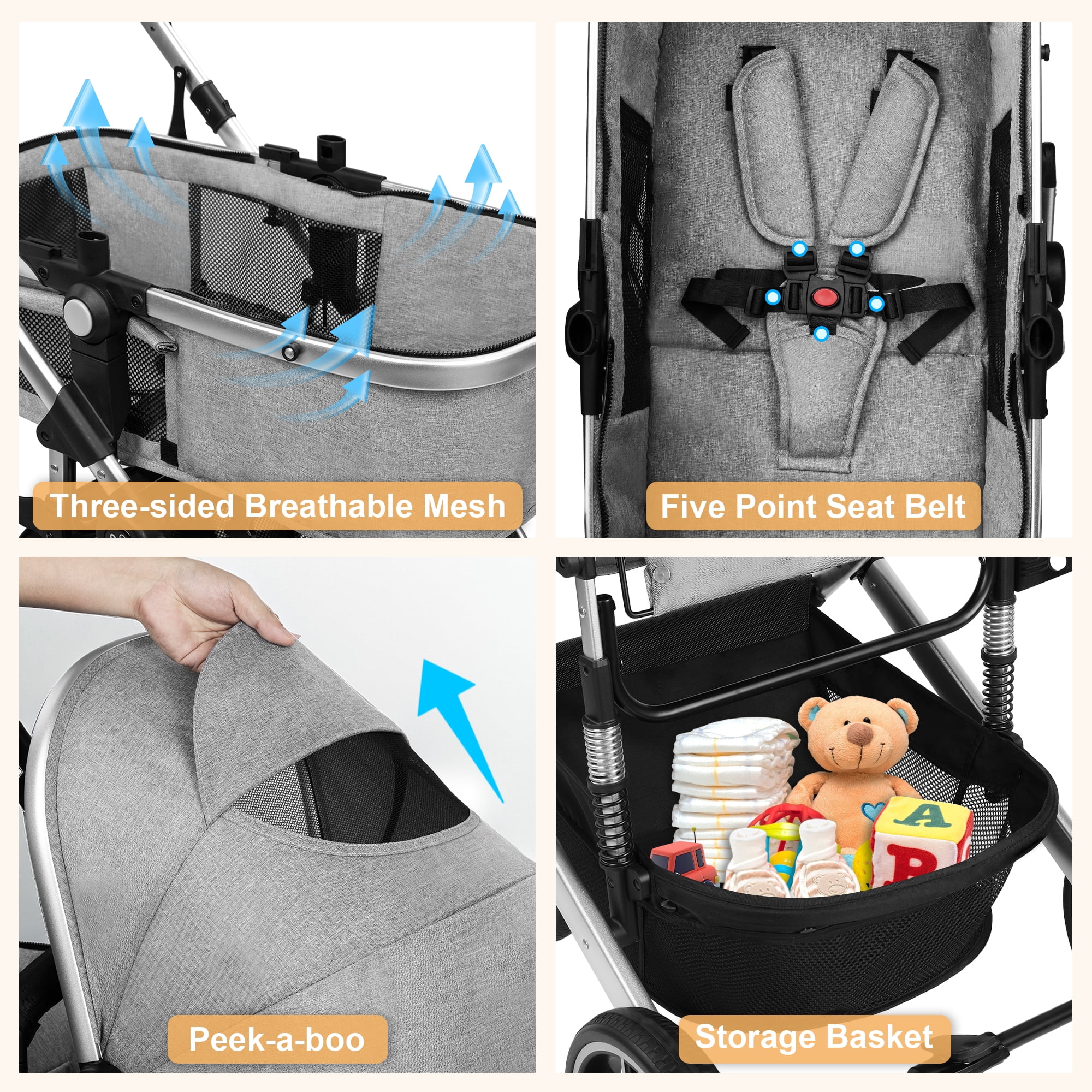 Tripland Heavy Duty Folding Baby Stroller, Multipurpose Collapsible Baby Stroller with Openable Tailgate for Beach Camping Picnic Garden Grocery Shopping Laundry (Black & Blue)