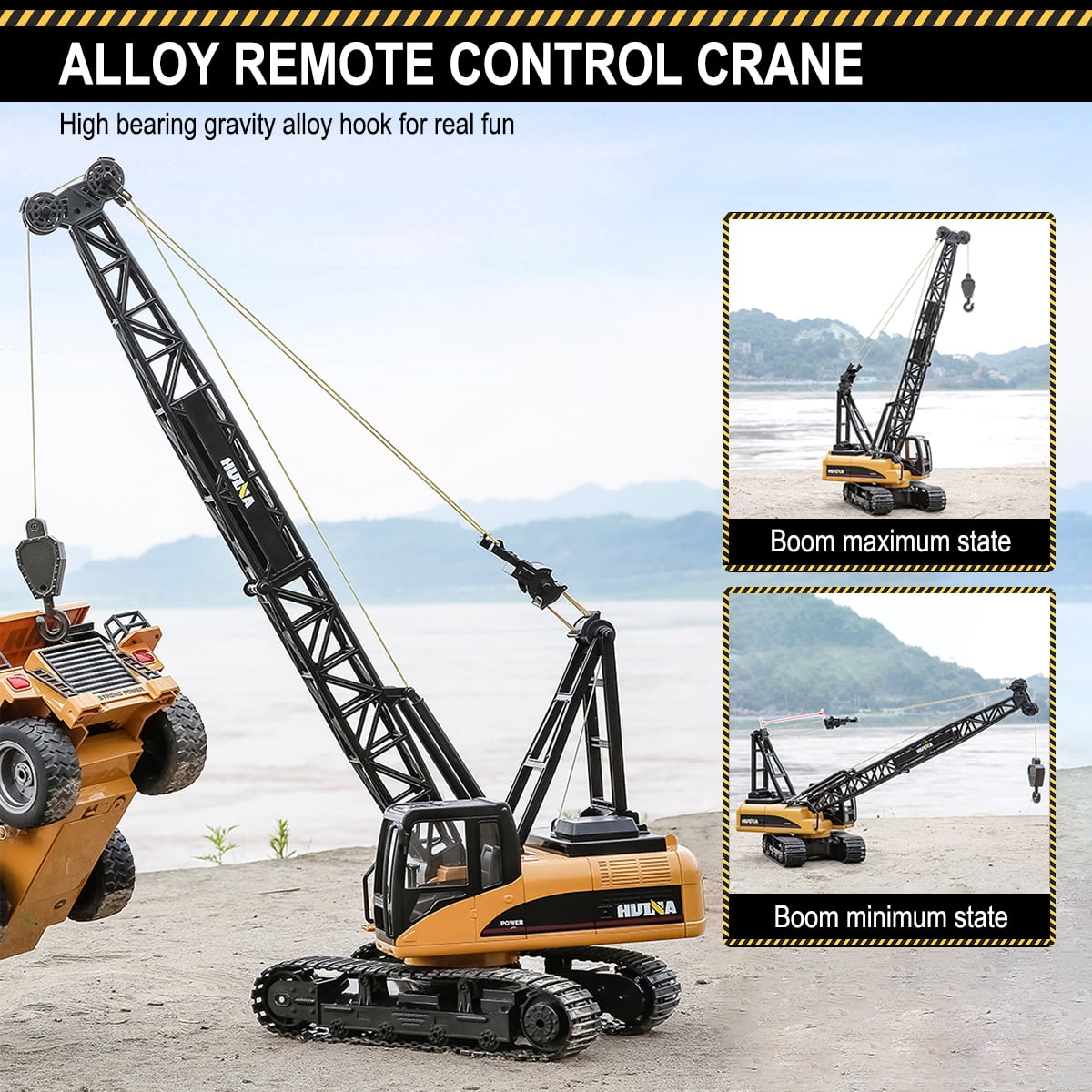 Fisca 1/14 Metal Hook Remote Control Crane Crawler Toys for Kids, 15 Channel RC Construction Vehicles Trucks Toys