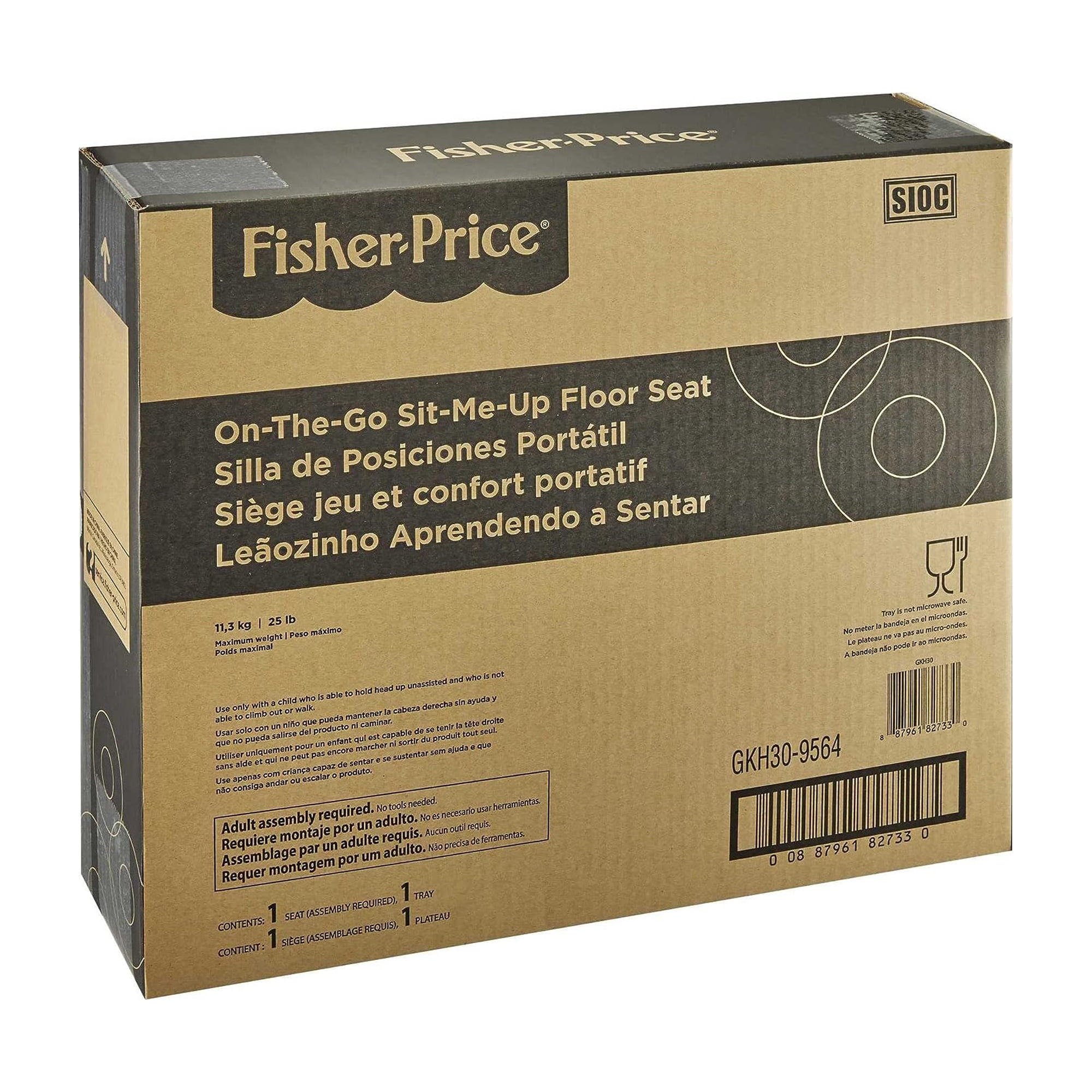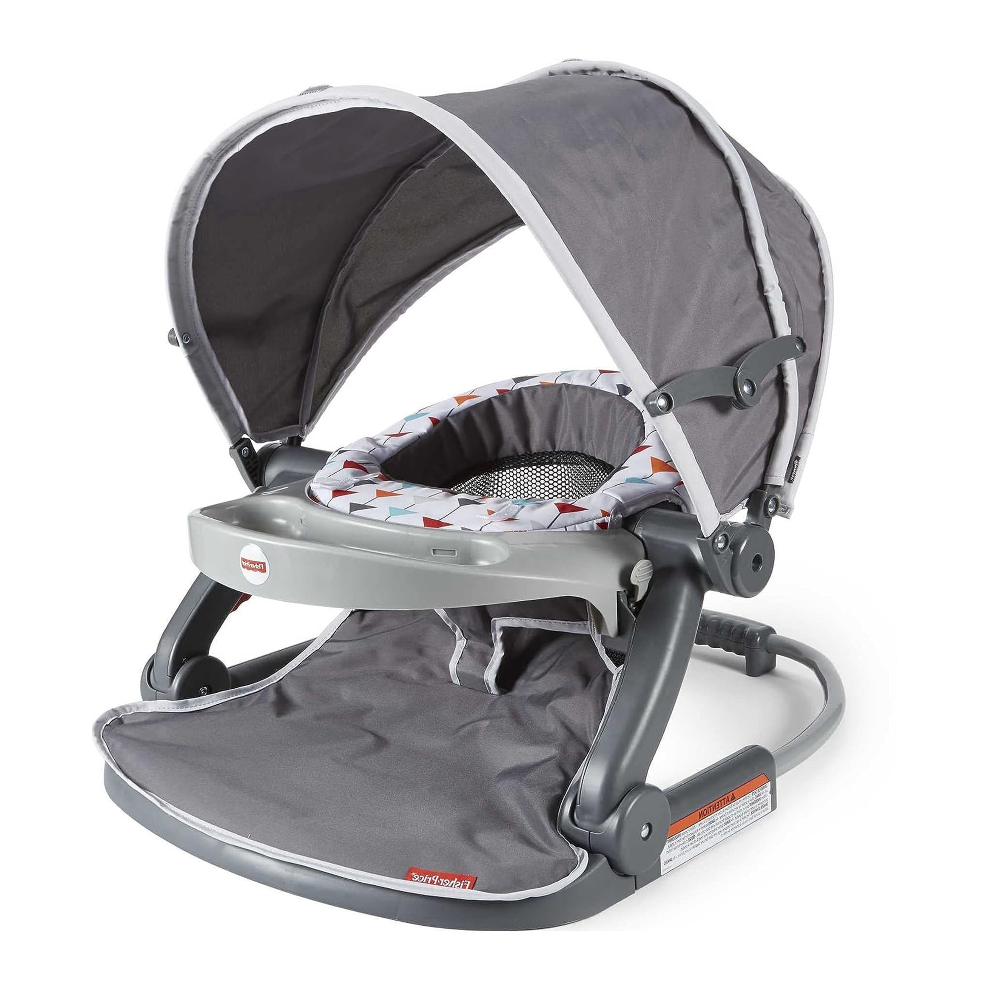 The Fisher-Price On-the-Go Sit-Me-Up Floor Seat is a super-convenient dining and play chair for your favorite little travel companion. The soft fabrics and wide base of this infant chair help support your baby as you sit them up to interact with the world around, and the overhead canopy helps protect against the sun’s bright rays. And the best part The seat folds flat, making it easy to store or take with you as you travel! Max. weight 11,3 kg/ 25 lb. Use only with a child who is able to hold head up unassisted and who is not able to climb out or walk.
