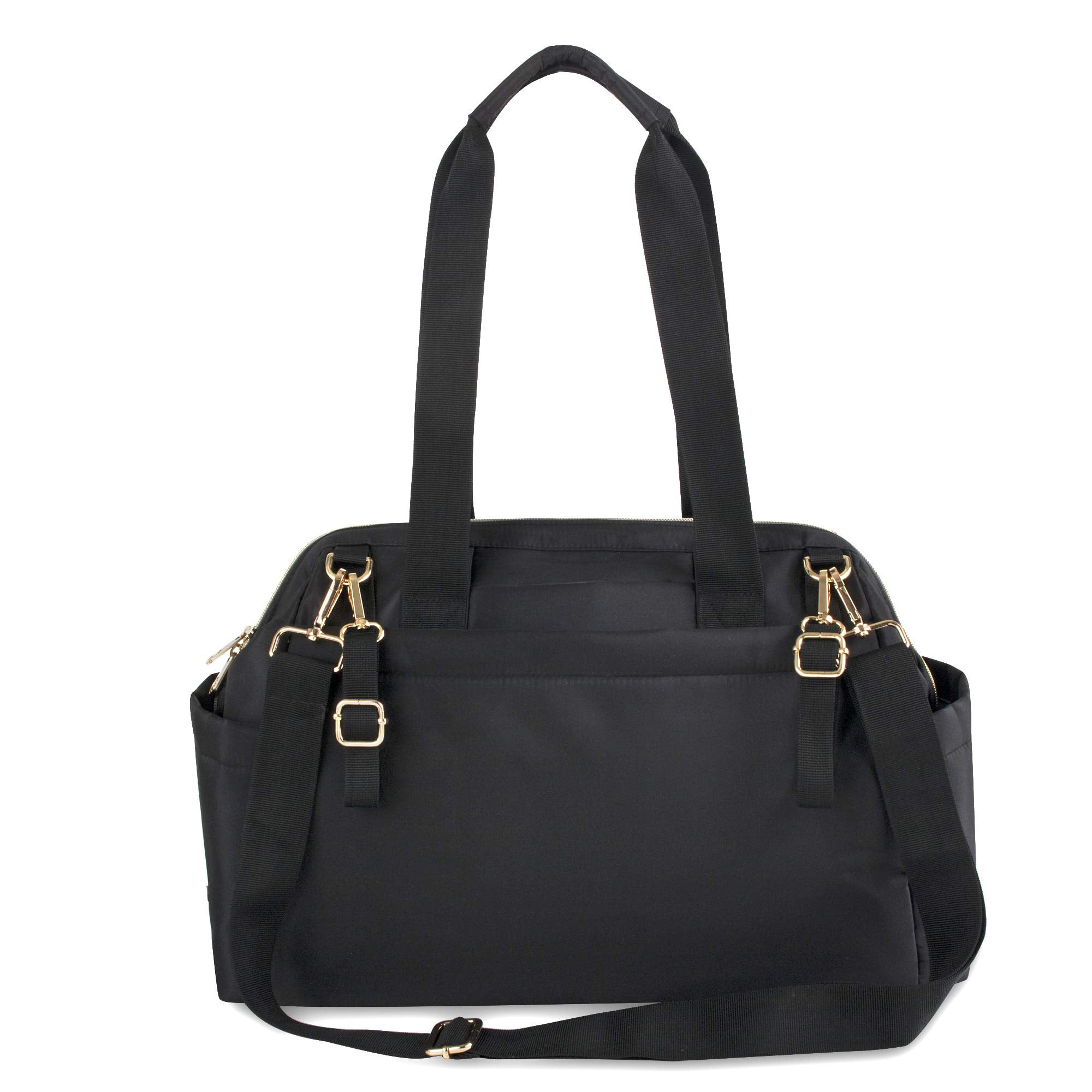Introducing the Harper quilted convertible crossbody diaper bag tote with shoulder straps, removable luggage strap, matching changing pad, insulated bottle pockets, and electronics pocket by Fisher-Price. This diaper bag carrier for moms and dads is a one-stop shop. Store your baby’s clothes, shoes, diapers, baby powders, lotions, wipes, toys, pacifiers, feeding bottles, and electronic devices for mom and dad on the go! The Harper quilted convertible diaper bag tote contains a pair of shoulder straps so this bag can be lugged around either on your shoulder, on your forearm, or even by hand. It also contains an adjustable luggage shoulder strap, so you can wear it as long or as short as you wish on your shoulder and even crossbody it messenger bag style too. Tired of carrying the bag altogether? Take advantage of the stroller strap feature that’s included as well, which allows you to hook the diaper bag easily to prams, suitcases, other luggage bags and even shopping carts while you and your baby are on the move. Simply unfold, use, disinfect, and use it again and again.