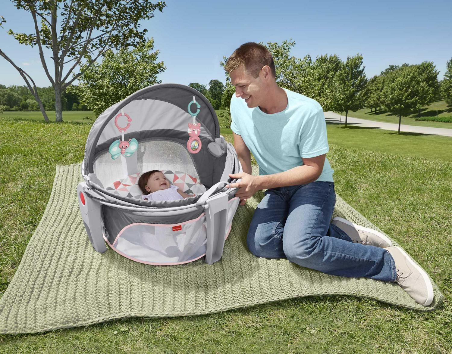 Fisher-Price On-the-Go Baby Dome Portable Bassinet and Play Space with Toys, Rosy Windmill, Unisex