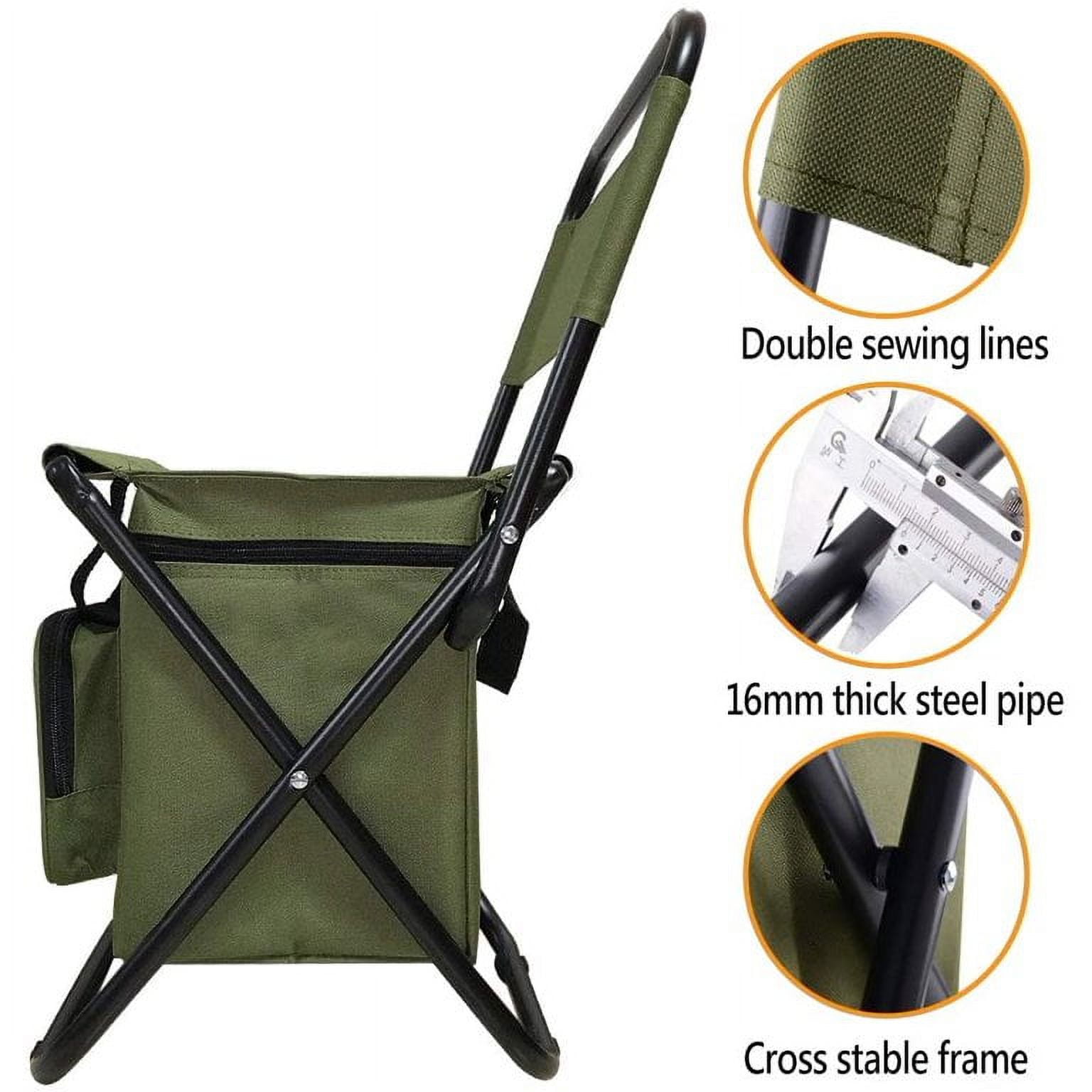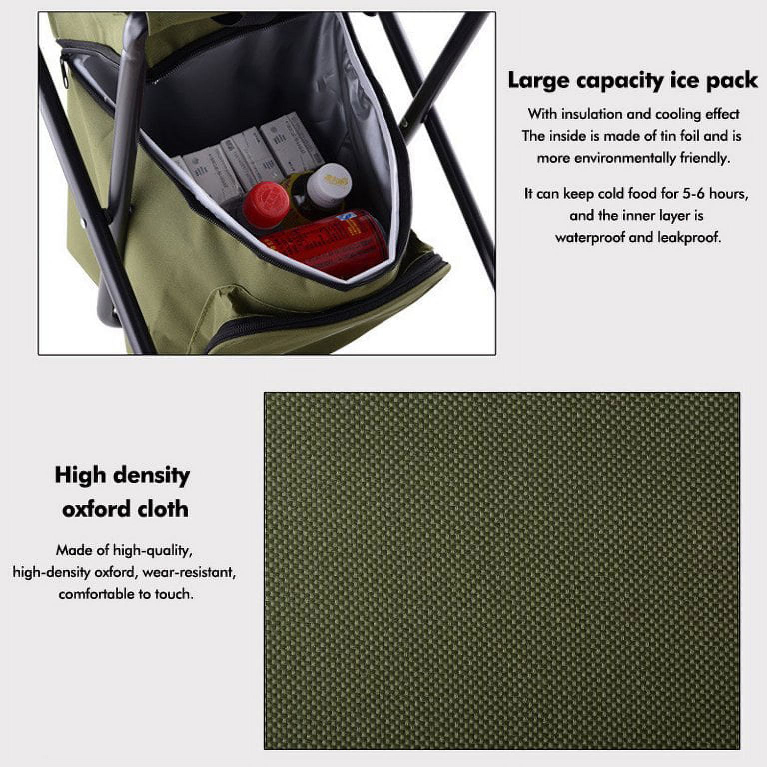 Product details: Easy to Carry: Mini portable folding stool is very light, you can open or fold into a compact size in a few seconds to save a lot of space. We have specially designed portable bags that are very portable. When you are traveling, fold the mini portable chair and place it in your travel backpack or in your car. Durable and Comfortable: Folding camping stool is made of Oxford cloth and metal pipe. The metal pipe frame is ultra-light and the four-legged design can provide better support. Strong and durable, seat is soft and comfortable. Even if you sit on a camping stool for a long time, you will not feel tired. Multipurpose: Outdoor folding chair for all outdoor and indoor activities, perfect for bedroom, dorm, office, pool, yard, beach, sports meeting, picnic party, camping, BBQ, fishing, mountaineering. With Insulated Function: Pack everything you need. Carrying a hot or cold meal is simple! Cross design- using thickness 16 mm steel pipe can fold to compact size and provide stronger load capacity. Specifications: Color: Green Cloth Material: Polyester Oxford Cloth After Folding: 45 x 35 cm After Expansion: 35 x 29 x 96 cm Package Included: 1 x Foldable Camping Chair