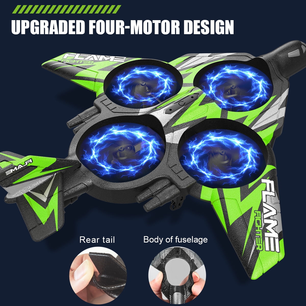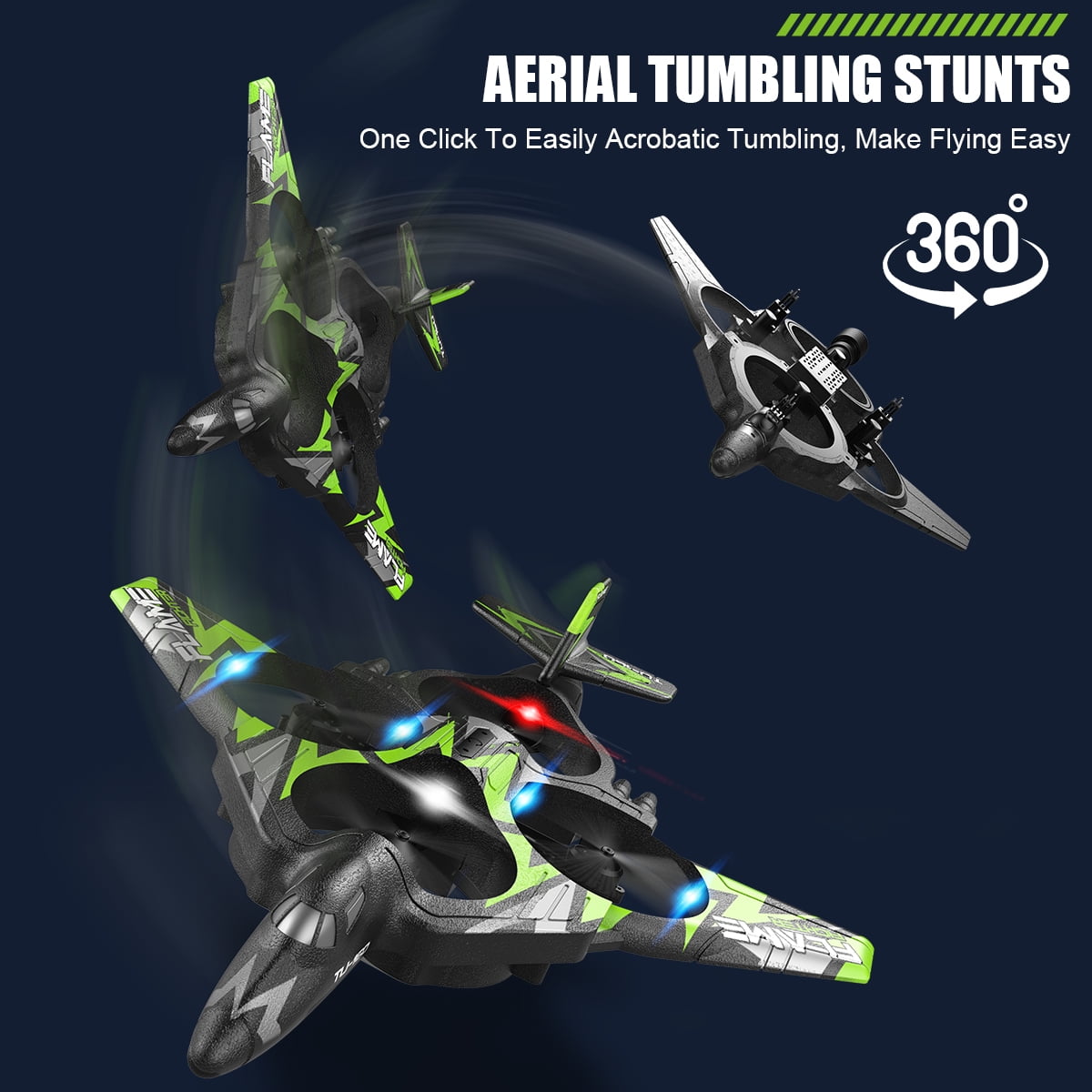 The aircraft is four-channel design,simple operation, good flight experience. The rc plane with light can stunt flying circle fly, 3D flips and auto rotation, forward, backward, turn left/right, fly up and down. One Key Taking-off / Landing and auto-hovering function enable this rc plane to take off easily and hover at its current height. Under Headless Mode, directions is always relative to where pilots face. Built-in 3- gyroscope flight self-stabilizing system, flying more easily. Be made of EPP and ABS material, lightweight, durable, and impact resistance, not easy to break, good stability. The plane comes with colorful lights, suitable for flying during the day and night. 2.4Ghz Control, no interference. It is very suitable for both beginners and amateurs.