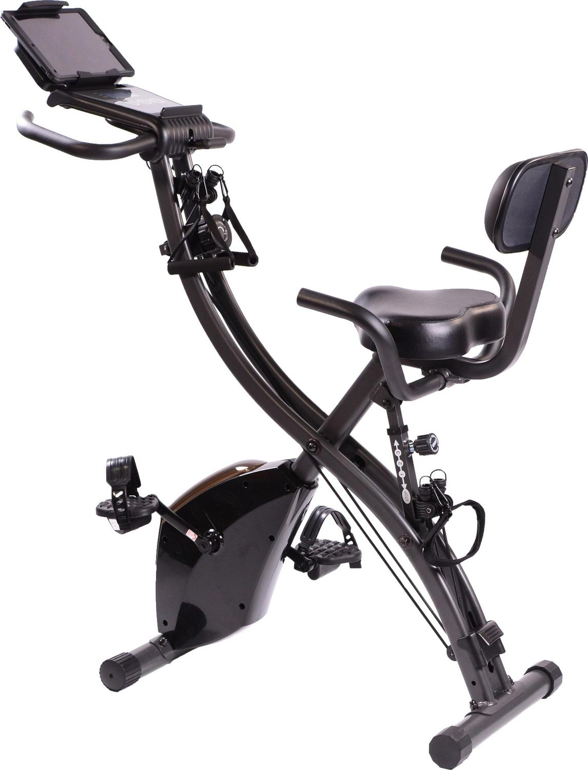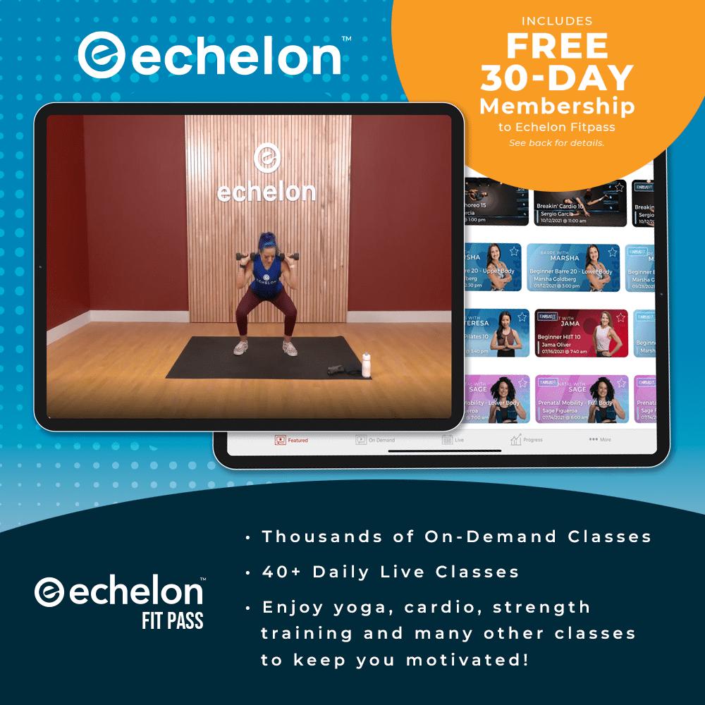 Pedal past all your goals with the Flex Bike Ultra. Multiple levels of adjustable magnetic resistance ensure that you’ll be able to challenge yourself, while built-in resistance bands allow you to work your upper body as well. The LCD display has six functions to track your progress: speed,time, distance, scan, calories, and pulse. When you’re finished, simply fold up and wheel away for easy storage.Give your home workout a boost with a free 30-day trial of Echelon s FitPass Membership. Through the Echelon Fit app, FitPass Membership brings high-quality, off-equipment workouts to anyone at any level. Echelon s expert instructors lead live and on-demand classes streamed from studios worldwide so you can easily find what moves you. FitPass Membership features classes in HIIT, Strength Training, Yoga, and more so you can change up your workouts and challenge yourself.