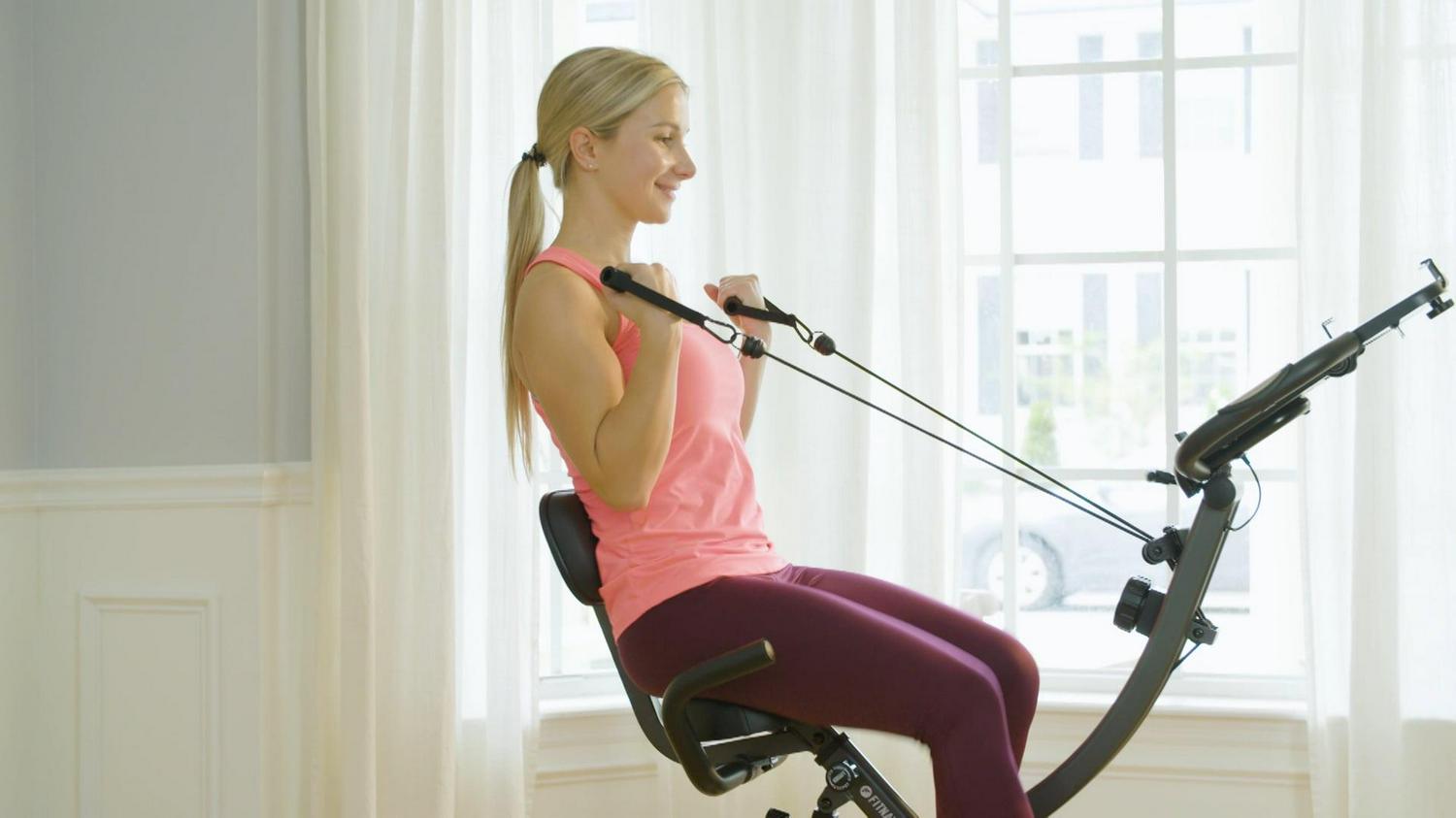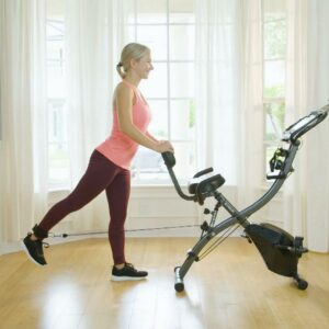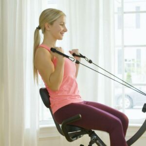 – Built-in resistance bands for upper and lower body workouts with three adjustable levels of intensity