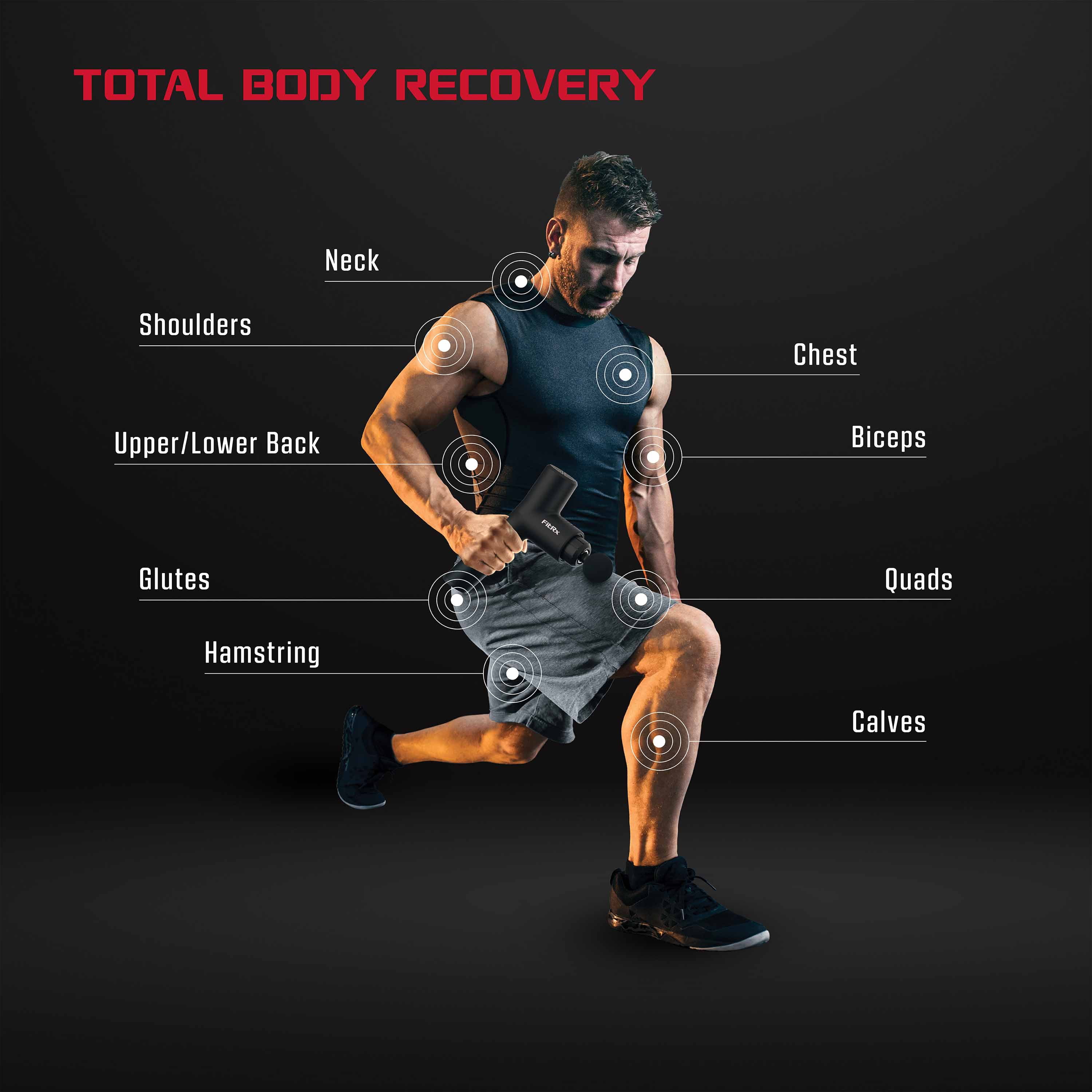 Versatile: Four attachments: Precision – which effects deep tissue regions and joints; Dual – soothes the neck and spine areas; Round – leg massager works large muscle groups like the thighs and calves; Flat Head – relieves the neck, spine, and Achilles tendon regions Adjustable: Six speed settings (1200 to 3200 RPM) for relaxed to vigorous muscle stimulation. Diverse: Use for fitness, circulation, relaxation, and/or physical therapy needs. Lightweight: Under 2 lbs. for easy use and travel. Quietly Powerful: Unwind and recuperate in silence with up to 4 hours of operating time (depending on speed and pressure settings). Portable: Carry the FitRx percussion massager anywhere with its included, premium storage case. Charge Up: With the included universal USB cable!