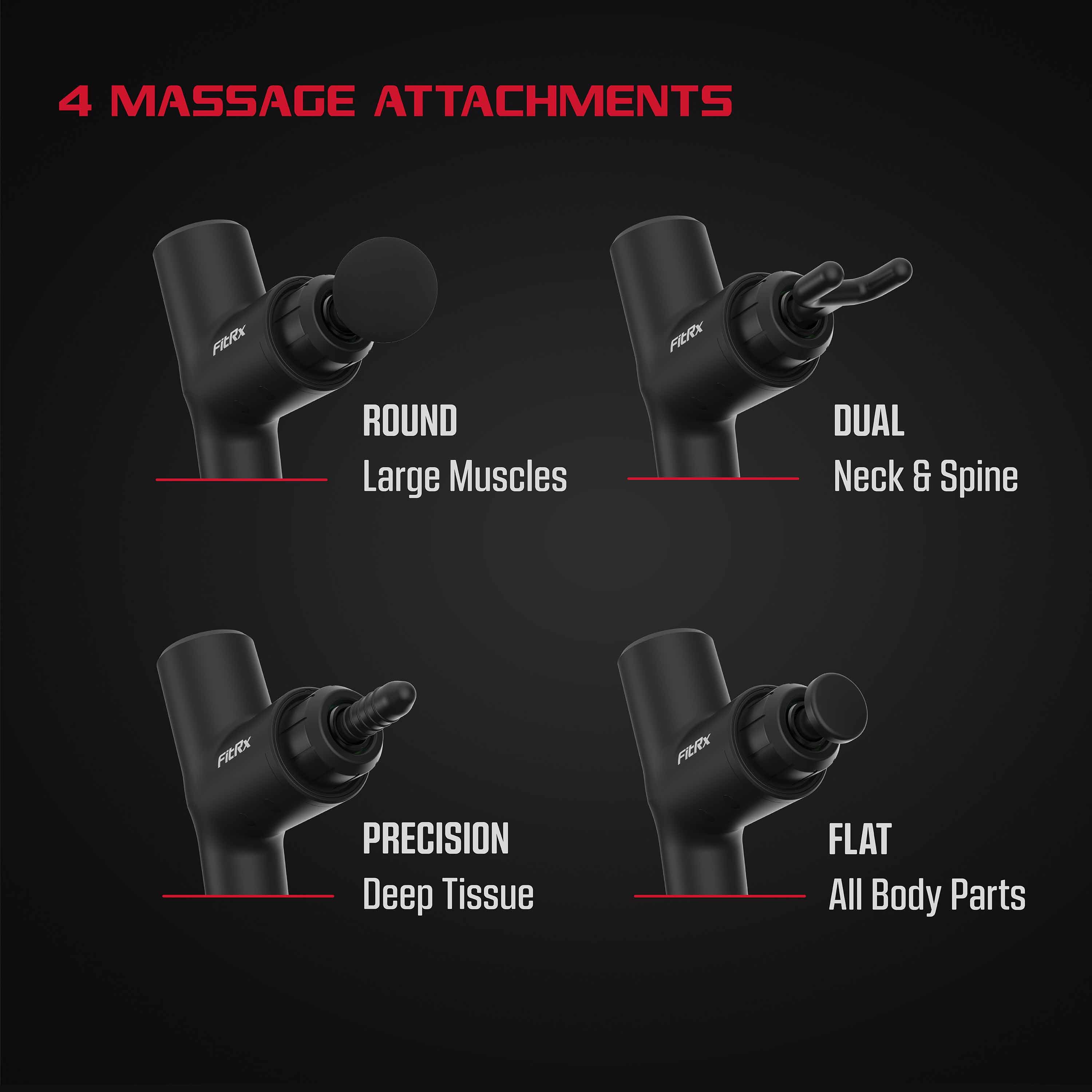 FitRx Massage Gun Handheld Deep Tissue Percussion Massager with 6 Speeds and 4 Swappable Heads For Premium Neck Back & Muscle Relief