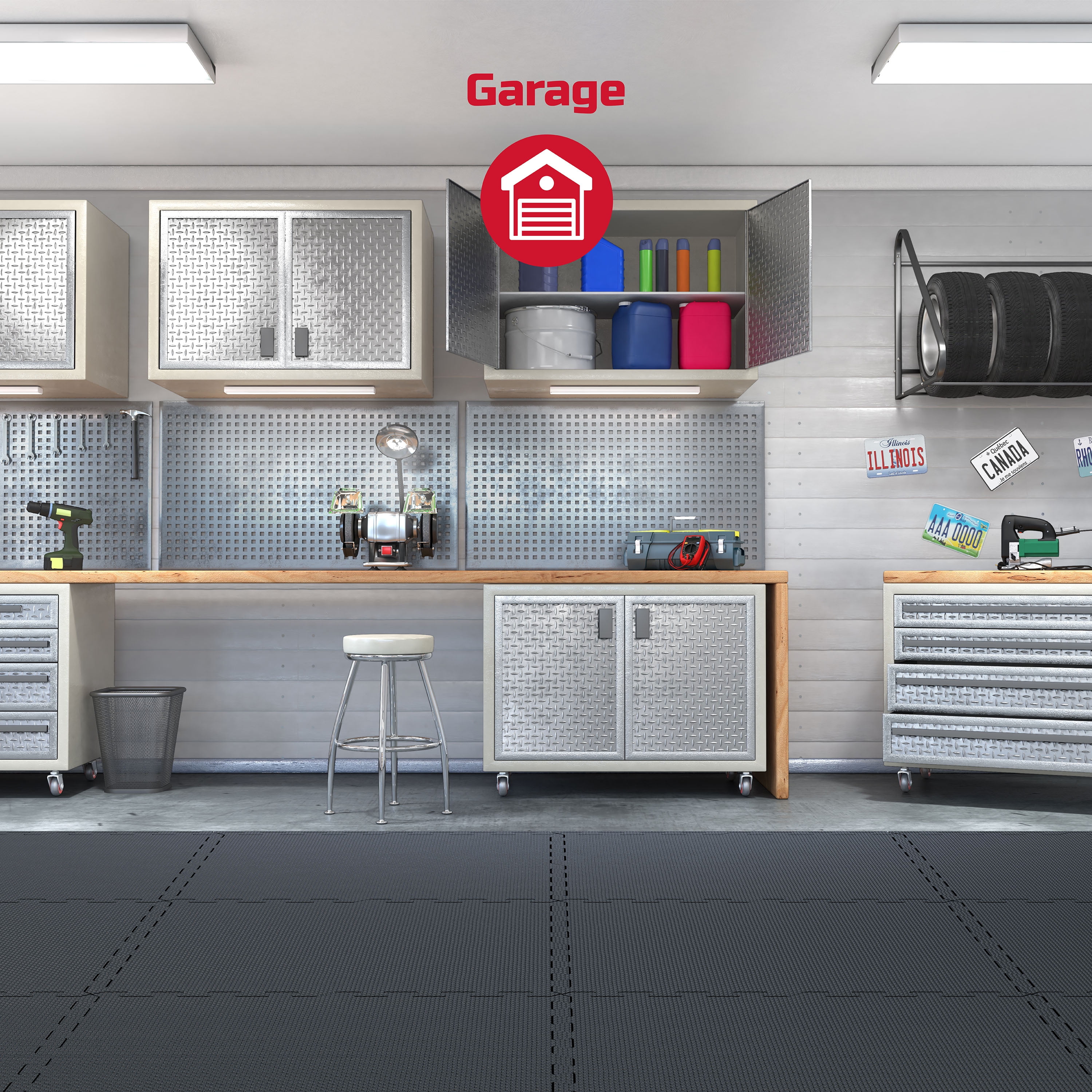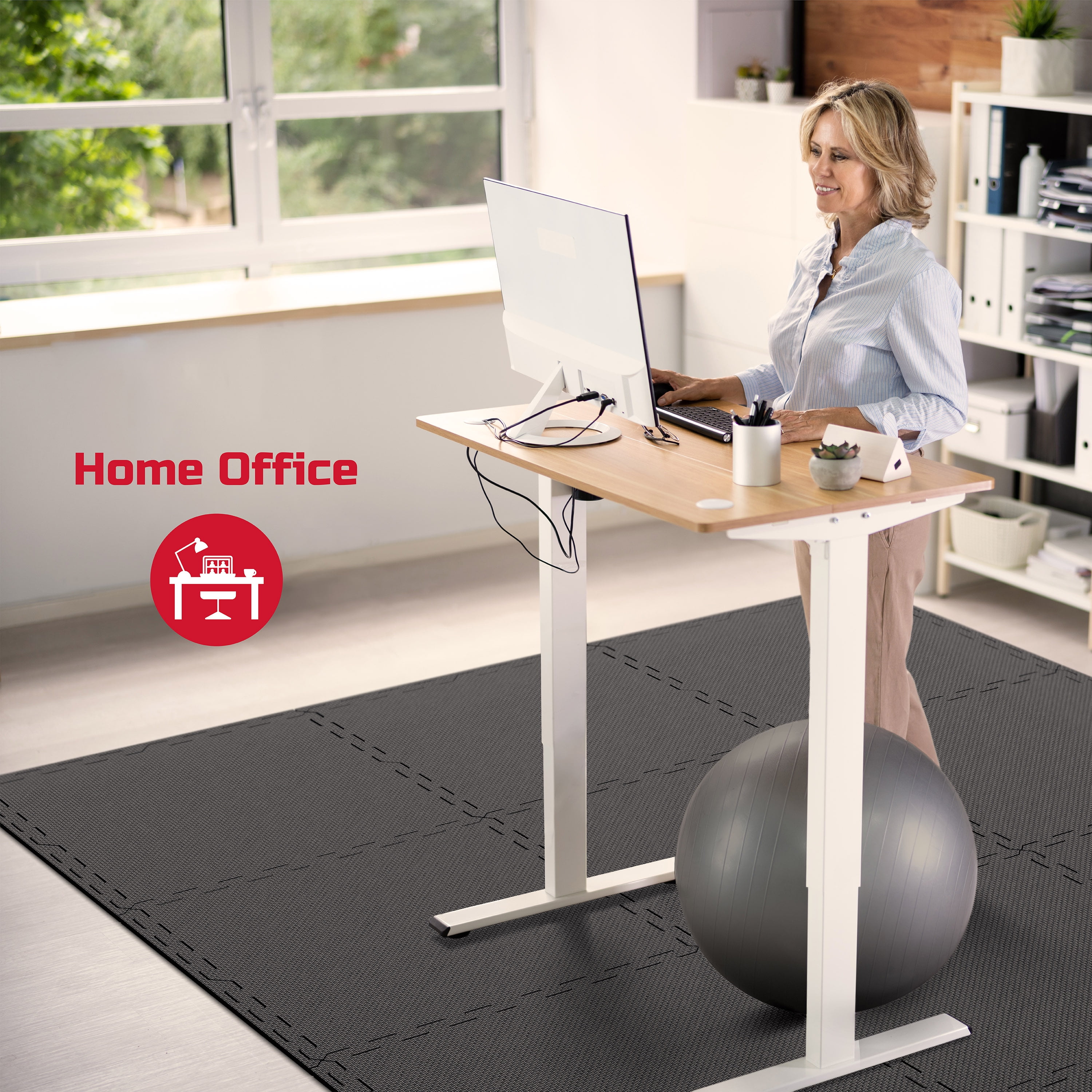 12 foam floor mats with 24 border pieces FitRx fitness mat ½ in. thick for floor protection and cushioning support Interlocking design for easy assembly and customization Non-slip, sweat and water-resistant design, and easy to clean Perfect workout mat for home gym Each tile measures 24 x 24 in.; total area coverage of 48 sq. ft., 7 lb