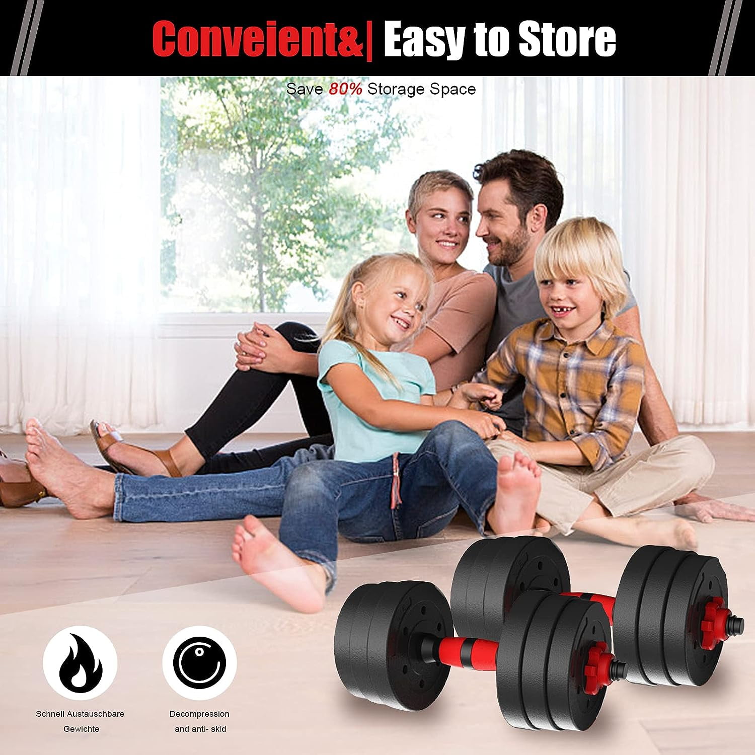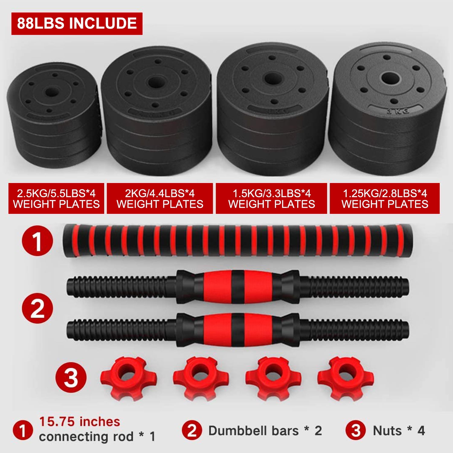 【UPGRADED MATERIAL】 – Our weight plates are filled with iron sand and wrapped with high-grade PE materials. Prevent damage to the floor and rust. The thickened foam connecting rod conforms to the ergonomic design, reduces the pressure on the shoulder, and avoids sports injuries. 【WEIGHT PACKAGE LIST】 – 60 lbs fitness dumbbells include: 4 × 5.5lbs weight plates, 4 × 4.4lbs weight plates, 4 x 3.3lbs weight plates, 4 × 2.75lbs weight plates, 4x dumbbell nuts, 1x connertor and 2x dumbbell bar. You can choose different weights according to your own preferences to meet the intensity needs of you and your family at different stages of exercise. 【3 MODES – FIXTECH】 adjustable dumbbell set, with 3 modes of use: dumbbell, light barbell and heavy barbell. Bring dumbbells to your home,Build your home gym. Get started on your fitness journey with a dumbbell workout! 【THE BEST HOME FITNESS EQUIPMENT】 – 3-in-1 mode, you can carry out a variety of balance strength training to help exercise biceps brachii, leg and abdominal muscles; It can also help maintain low blood fat and increase oxygen intake to obtain a healthy body. 【EASY TO ASSEMBLE AND STORE】 – Depending on your and your family’s exercise needs, you can easily assemble the weight you want. For the exercisers with small space, they can easily disassemble it after use and put it under the table without taking up space.