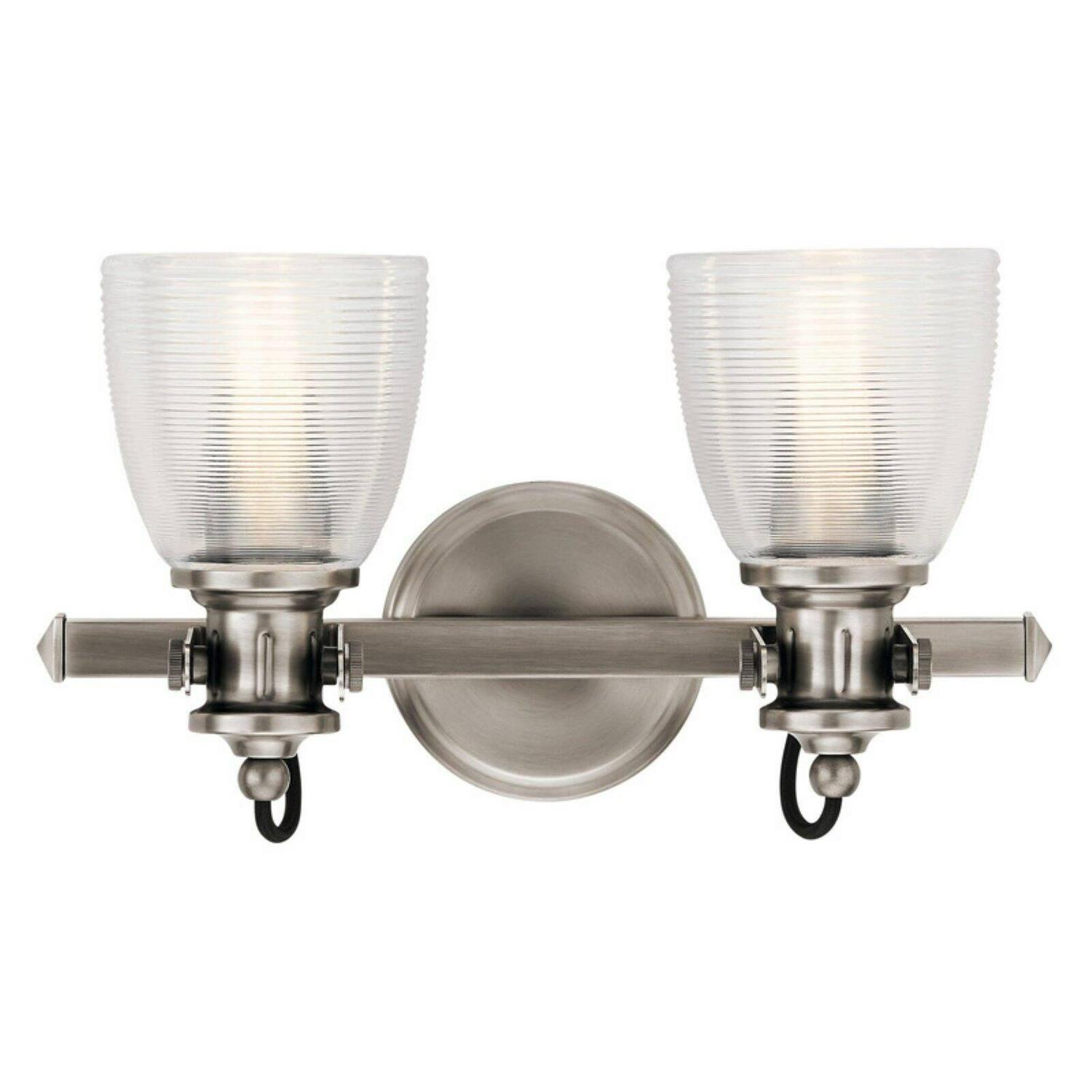 Kichler Lighting-45872CLP-Collection: Flagship, Material: Steel, Finish Color: Classic Pewter, Width: 15.5″, Height: 9.5″, Depth: 7″, Height From Outlet Box: 2.5″, Backplate Width: 5″, Lamping Type: Incandescent, Number Of Bulbs: 2, Wattage: 75 Watts, Dimmable: No, Moisture Rating: Damp Rated, Desc: The Flagship(Tm) Collection 2-Light Bath Light Offers A Nautical-Inspired Look That Doesn’T Overlook The Details. Ribbed And Textured Glass Shades, Exposed Black Cords And Mechanical Supports Blend To Add Interest. Back Plate Width: 5.00. ,-Flagship – 2 Light Bath Vanity Approved For Damp Locations – With Coastal Inspirations – 9.5 Inches Tall By 15.5 Inches Wide