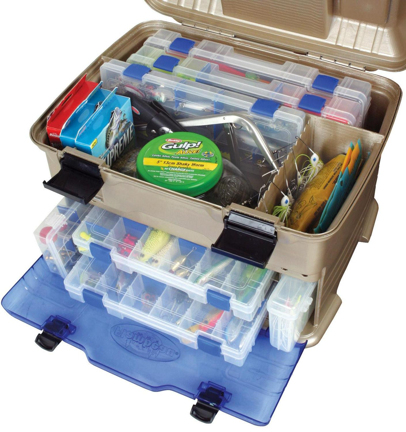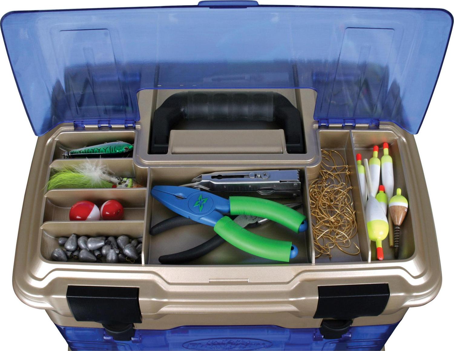 - Flip-top lid yields quick access to 7 tackle storage compartments