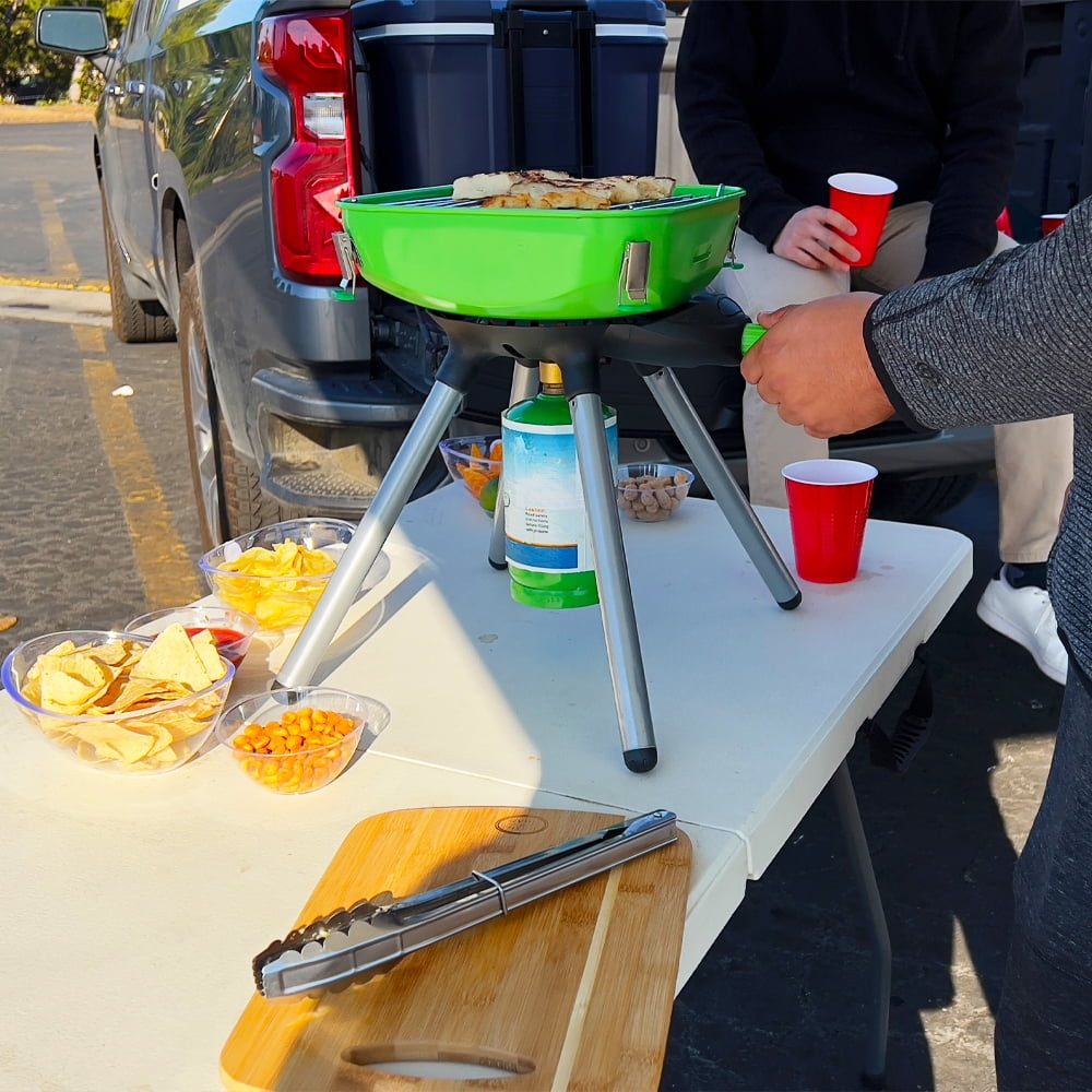 Adjustable Heat Control: This portable gas stove features an 8,000 BTU burner, allowing you to easily control the heat output with an adjustable knob. Whether you’re simmering or searing, you can decide how high the flame should be for optimal cooking results. Take Anywhere Convenience: Designed for outdoor adventures, this single burner propane stove is lightweight and portable. The 9.5″” x 12″” cooking surface is ideal for efficient cooking, while the removable legs simplify storage and transportation for your camping trips. Auto Ignition Feature: Lighting your single burner camp stove is easy thanks to the convenient auto ignition switch. Say goodbye to matches and lighters—this feature ensures quick and reliable start-ups, making outdoor cooking more enjoyable. Multi-Use Cooking Options: This versatile propane camp stove is not just for BBQ. With an included stove top, grill, griddle, pot, and wok cover, you can prepare a variety of meals, from pancakes to stir-fries, ensuring culinary satisfaction on every adventure. Specifications and Compatibility: The Flame King portable gas stove is compatible with 16.4 oz propane cylinders, sold separately. This specification ensures you have the right fuel source for your outdoor cooking needs, enhancing your overall camping experience.