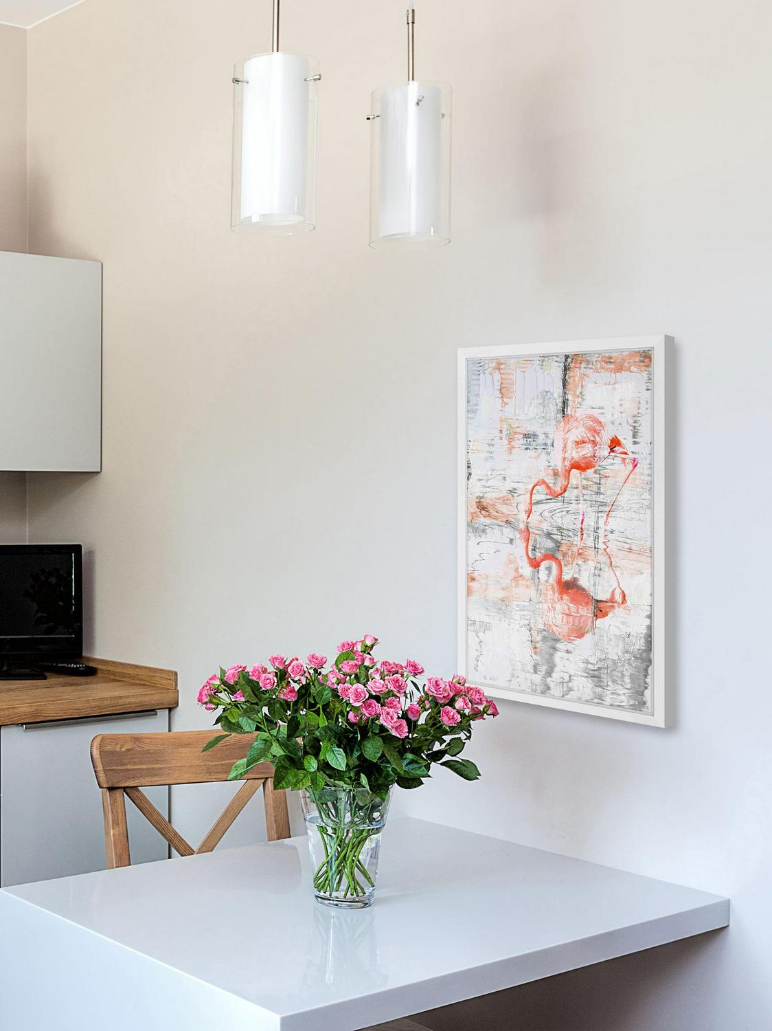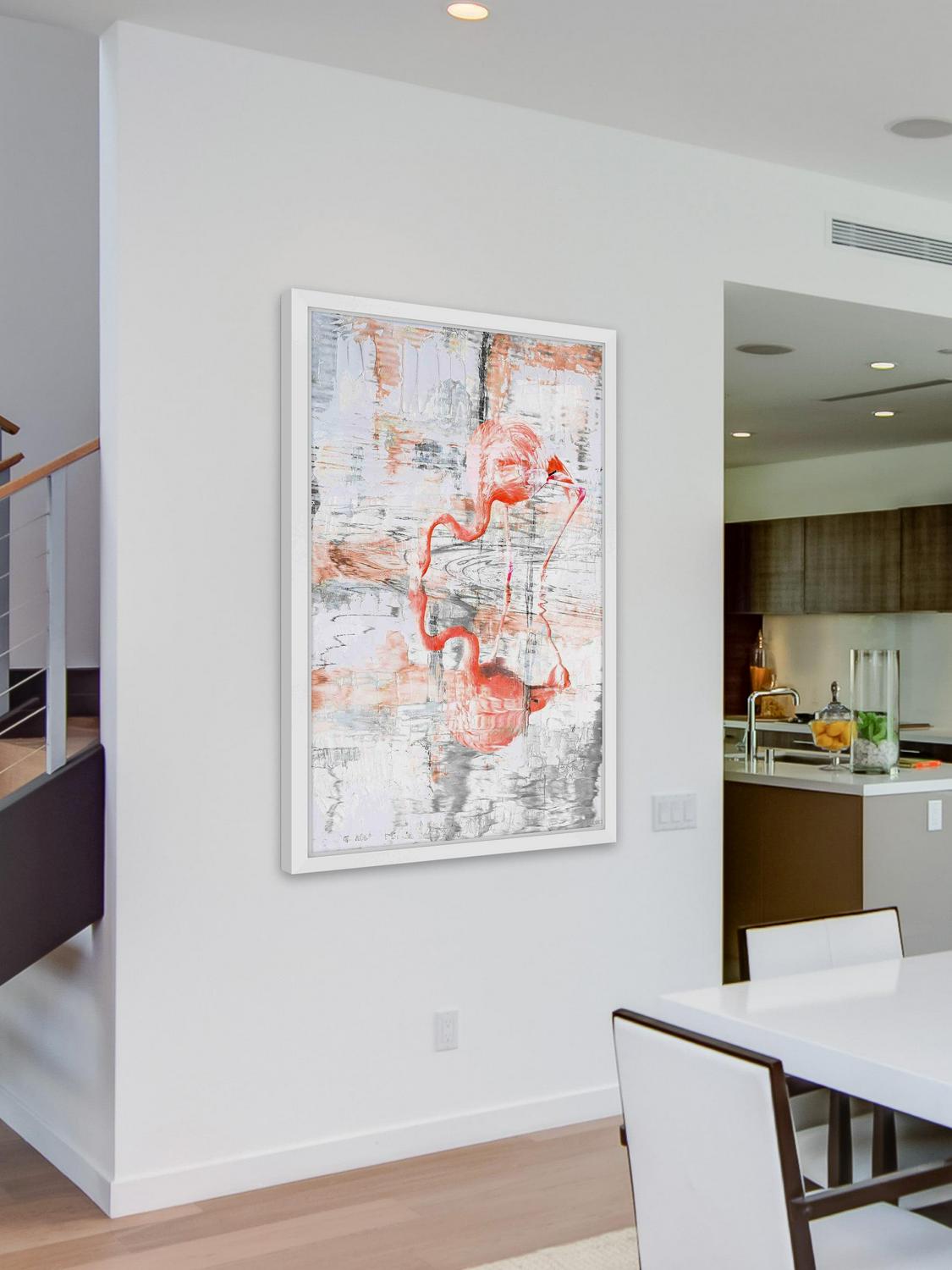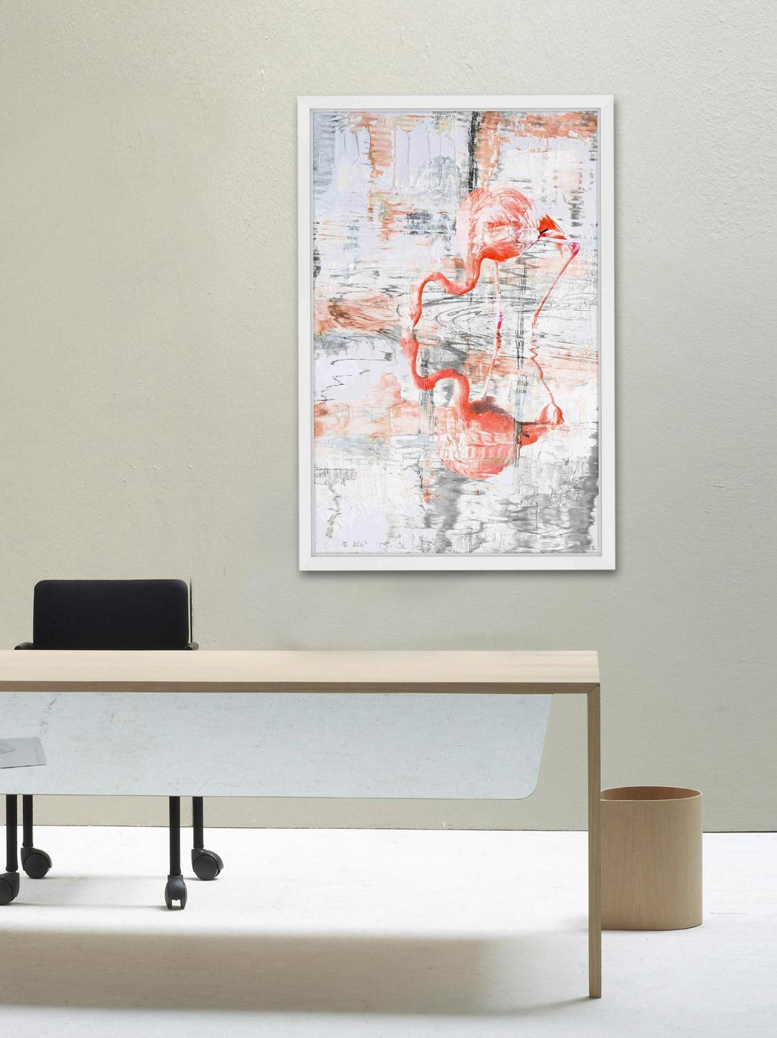 “Flamingo Reflection” Framed Painting Print: