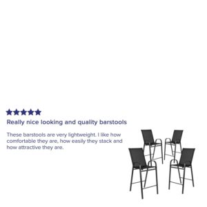 Flash Furniture 4 Pack Brazos Series Black Outdoor Barstool with Flex Comfort Material and Metal Frame