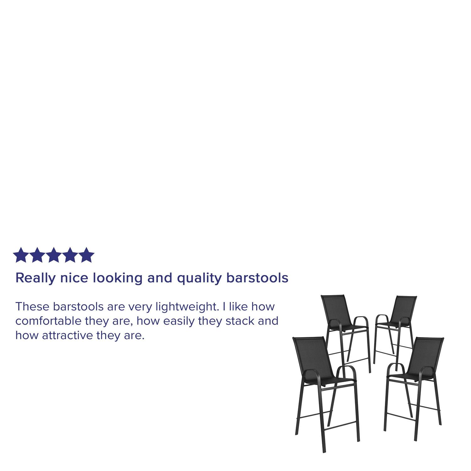– Flash Furniture 4 Pack Brazos Series Black Outdoor Barstool with Flex Comfort Material and Metal Frame
