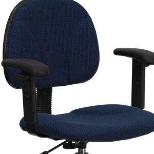 – Flash Furniture Bruce Navy Blue Patterned Fabric Drafting Chair with Adjustable Arms (Cylinders: 22.5”-27”H or 26”-30.5”H)