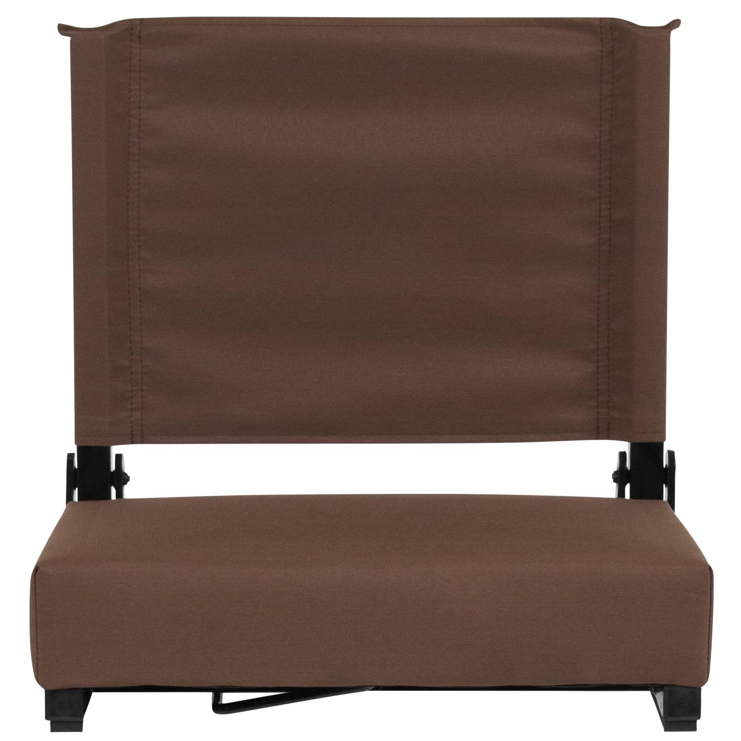 Flash Furniture Grandstand Comfort Seats by Flash – 500 lb. Rated Lightweight Stadium Chair with Handle and Ultra-Padded Seat, Brown