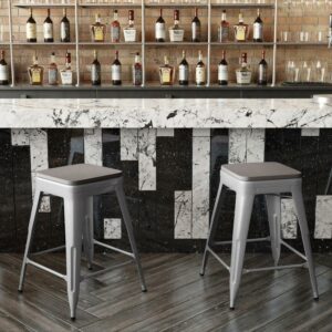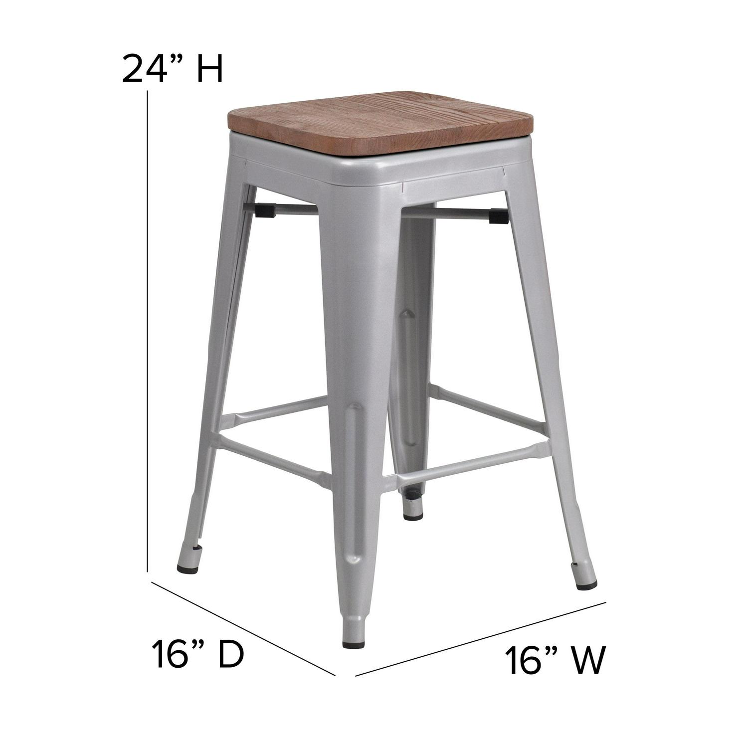 – Flash Furniture Kai Commercial Grade 24″ High Backless Silver Metal Indoor-Outdoor Counter Height Stool with Gray Poly Resin Wood Seat