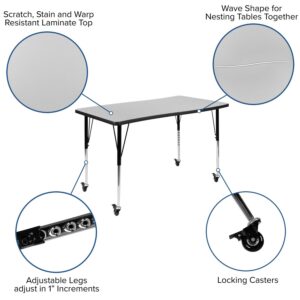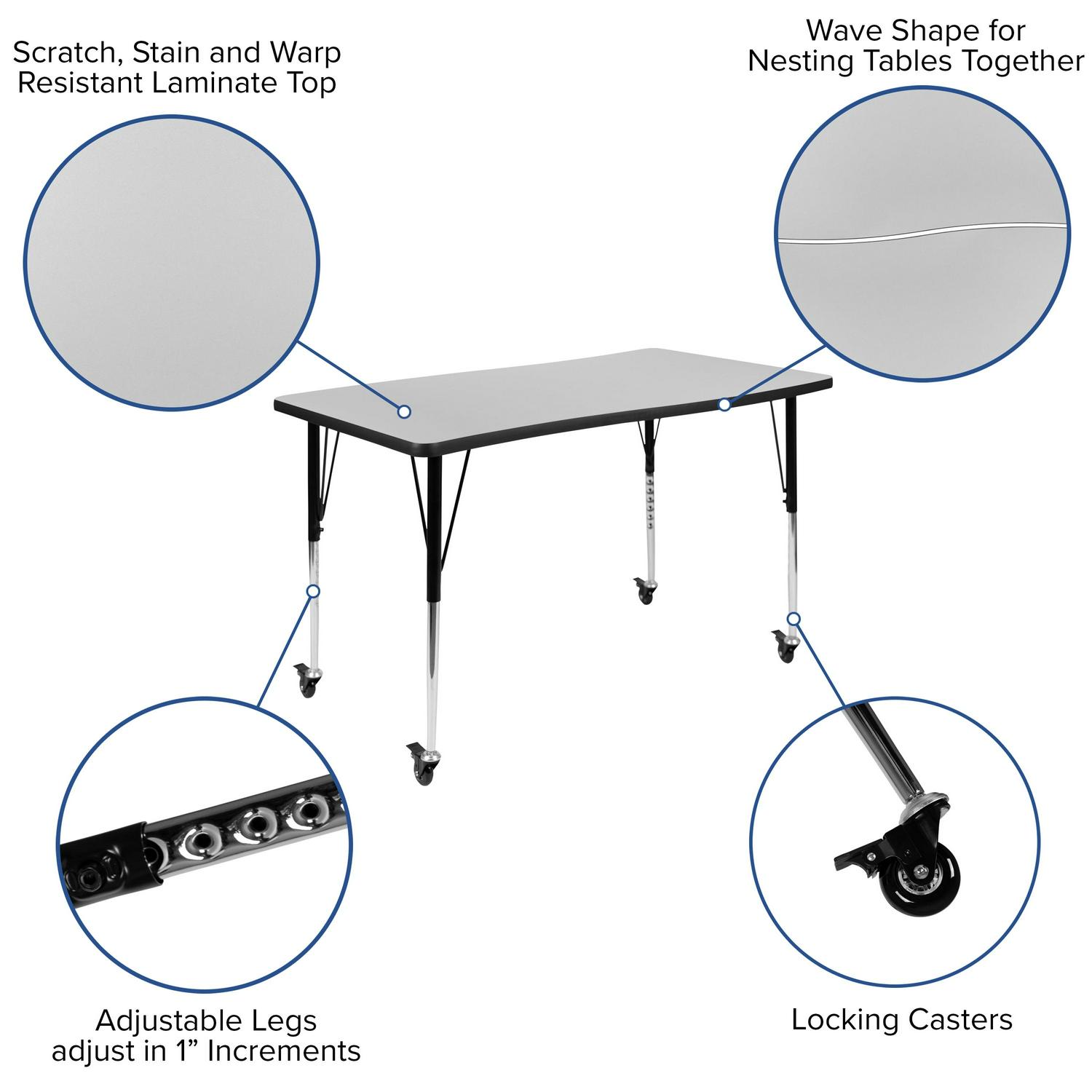 Flash Furniture Wren Mobile 28 W x 47.5 L Rectangle Wave Flexible Collaborative Grey Laminate Activity Table-Standard Height Adjust Legs